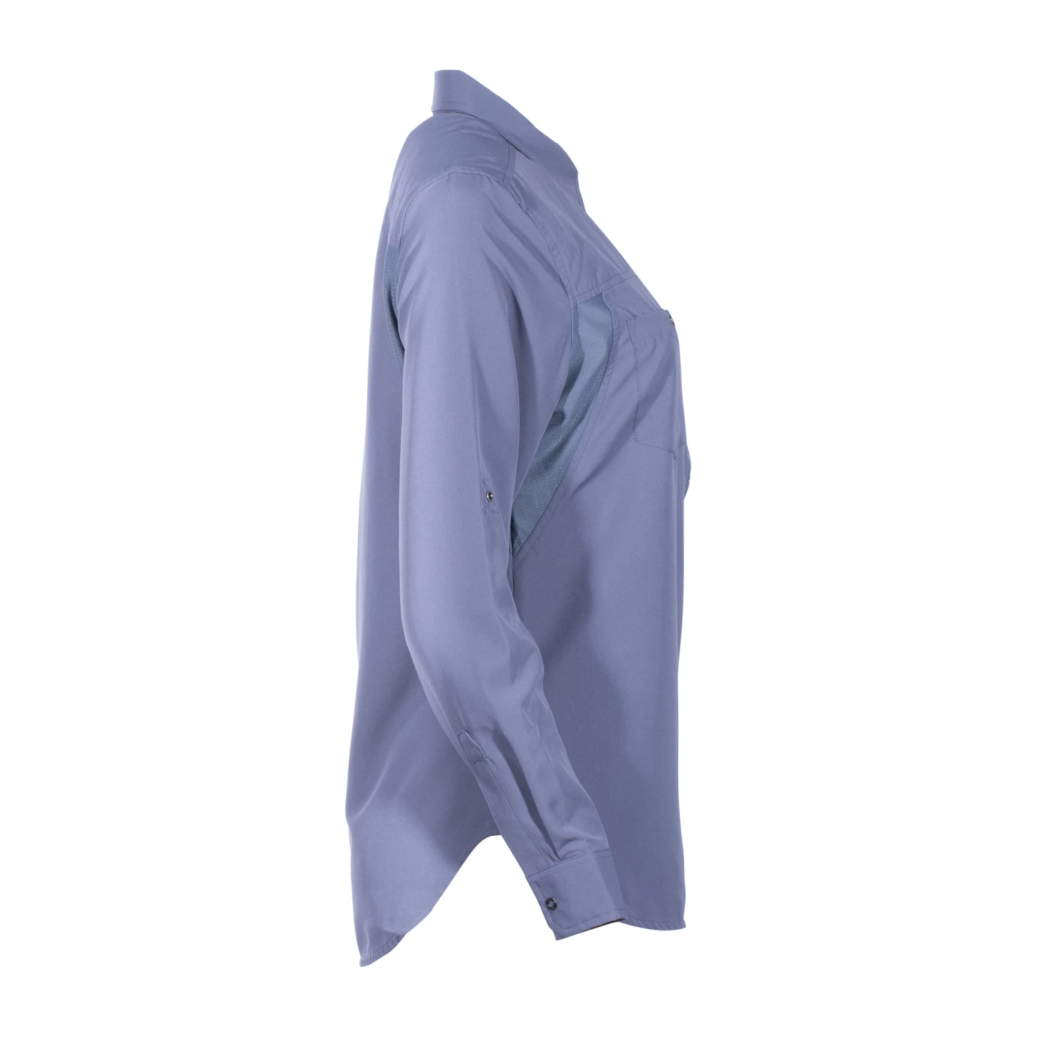 Das 5.11 Hemd Marksman turbulence Frauen überzeugt mit hohem Tragekomfort. Aufgrund der UPF50+-Eigenschaft des Oberteils lässt es sich ideal an warmen Tagen mit Sonnenschein tragen. Belüftungsöffnungen an den Seitennähten und ein feuchtigkeitsableitendes Finish halten Dich dabei stets kühl. Der Langarm-Stil, die Rapidraw-Leiste vorne in der Mitte mit Logo-Ringdruckknöpfen, der zweiteilige Kragen und die verstellbaren Ärmelmanschetten runden den Marksman optisch perfekt ab.