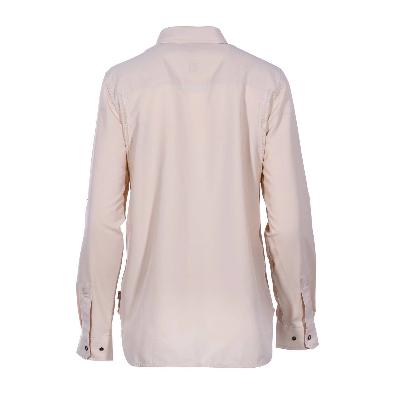 Das 5.11 Hemd Marksman vanilla Frauen überzeugt mit hohem Tragekomfort. Aufgrund der UPF50+-Eigenschaft des Oberteils lässt es sich ideal an warmen Tagen mit Sonnenschein tragen. Belüftungsöffnungen an den Seitennähten und ein feuchtigkeitsableitendes Finish halten Dich dabei stets kühl. Der Langarm-Stil, die Rapidraw-Leiste vorne in der Mitte mit Logo-Ringdruckknöpfen, der zweiteilige Kragen und die verstellbaren Ärmelmanschetten runden den Marksman optisch perfekt ab.
