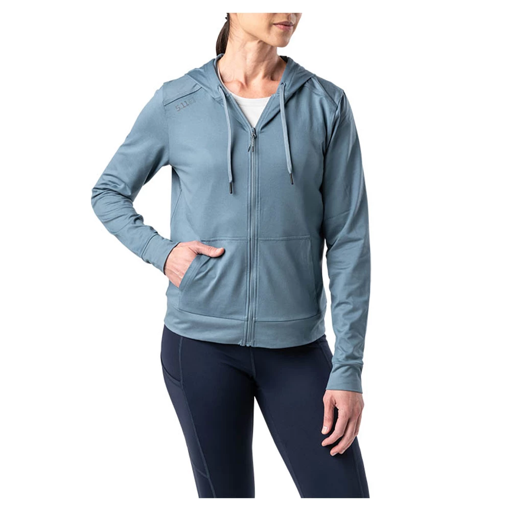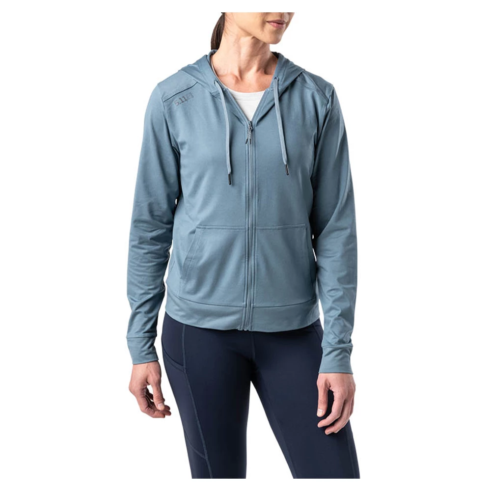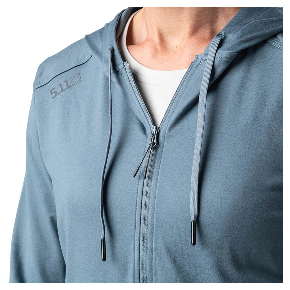Der 5.11 Pullover Emily Full Zip überzeugt mit hohem Tragekomfort. Die Kapuzenöffnung ist vollständig verstellbar, um die Kälte beim Joggen an einem kühlen Morgen draußen zu halten. Außerdem ist das Oberteil mit feuchtigkeitsableitenden und geruchshemmenden Eigenschaften ausgestattet. Auf diese Weise wird Schweiß unter Kontrolle zu halten. Der mittlere, vordere Reißverschluss und die Tasche sind im Känguru-Stil.
