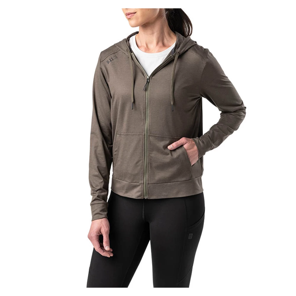 Der 5.11 Pullover Emily Full Zip überzeugt mit hohem Tragekomfort. Die Kapuzenöffnung ist vollständig verstellbar, um die Kälte beim Joggen an einem kühlen Morgen draußen zu halten. Außerdem ist das Oberteil mit feuchtigkeitsableitenden und geruchshemmenden Eigenschaften ausgestattet. Auf diese Weise wird Schweiß unter Kontrolle zu halten. Der mittlere, vordere Reißverschluss und die Tasche sind im Känguru-Stil.