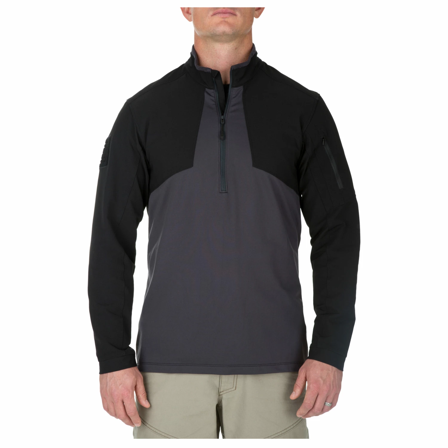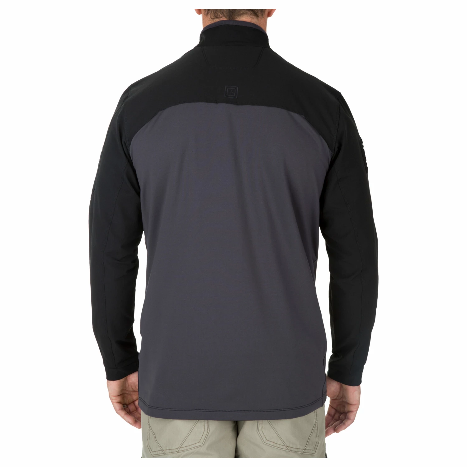 Bequemes Sweatshirt für kaltes Wetter. Schultern und Ärmel bestehen aus doppelt gewebten Softshell Material mit Stretchanteilen für mehr Bewegungsfreiheit. Schweiß wird effektiv nach außen geleitet und das Entstehen geruchserzeugender Bakterien vermindert. Eine RV-Tasche auf dem linken Arm bietet Platz für Kleinteile.