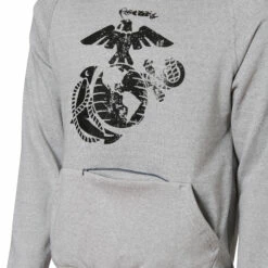 Der 7.62 Design Hoodie USMC EGA Marpat ist ein gemütlicher Kapuzenpullover mit Kängurutasche und verstellbarer Kapuze. Auf der Front ist das Logo des United States Marine Corps (USMC) im used Look gedruckt.