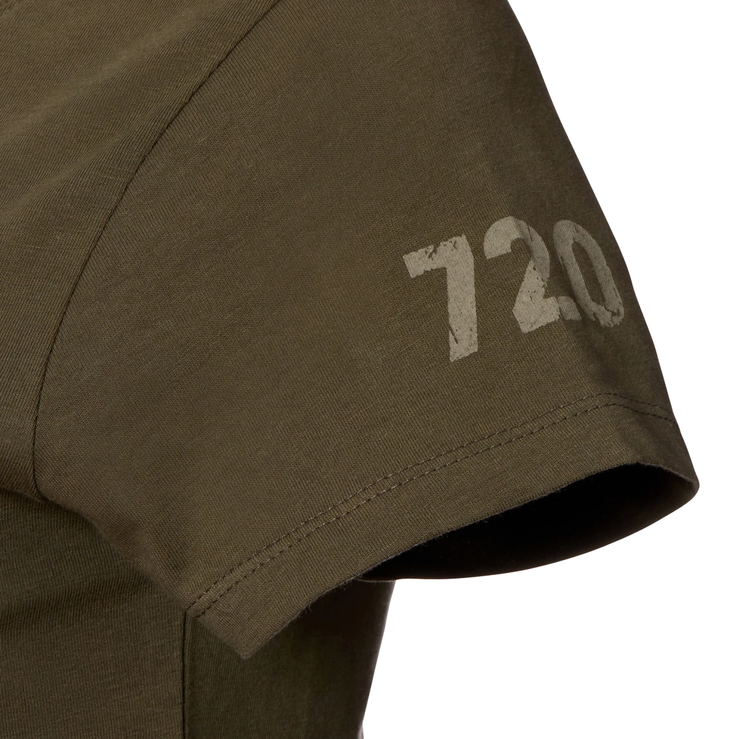 Das 720gear T-Shirt Bushcraft Wilderness Survival army Frauen ist für alle Bushcrafter und Survival-Fans gemacht. Eine Berglandschaft mit der Überschrift „Adventure ist out there“ zusammen mit „Wilderness“ und „Survival“ ist auf der Brust aufgedruckt. Mit 720er Schriftzug auf dem Oberarm und Logo-Print im Nacken.