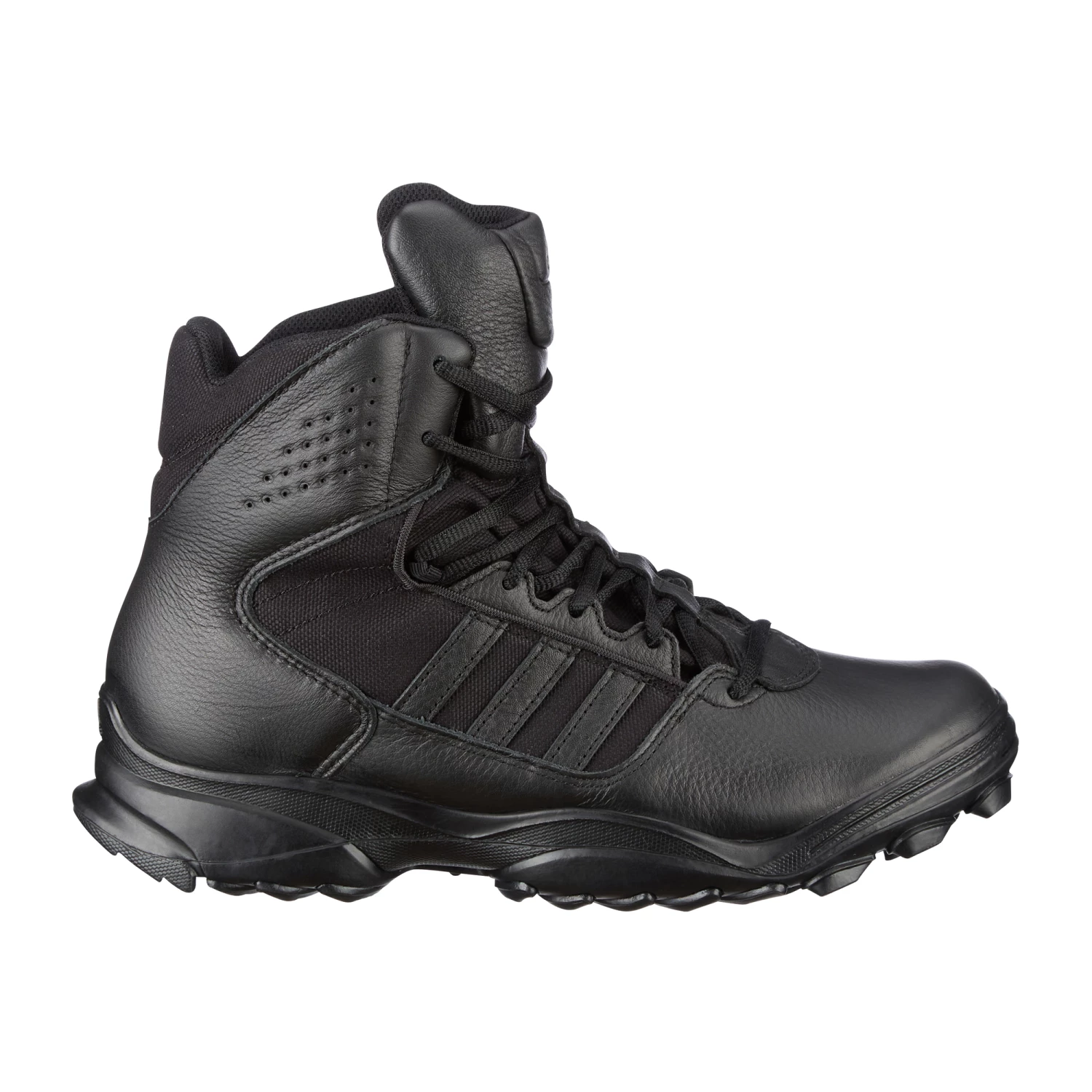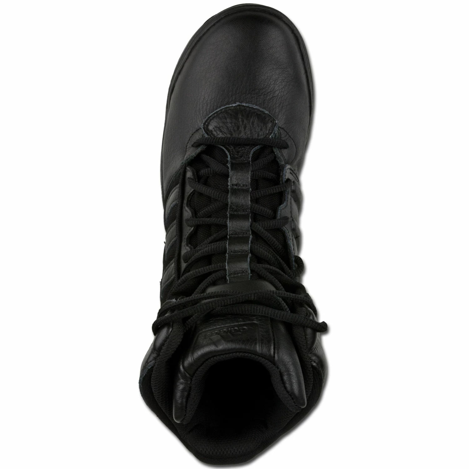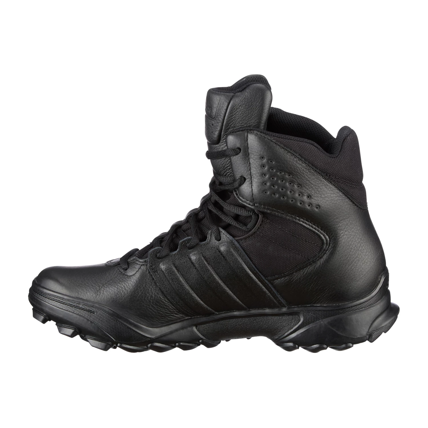 Durch seinen mittelhohen, atmungsaktiven Schaft aus vollnarbigem Glattleder mit Meshmaterial ist der adidas Stiefel GSG 9.7 auch für wärmere Klimazonen geeignet. Der Stiefel verfügt ebenso über abriebfeste Einsätze sowie eine vollgedämpfte, rutschsichere Sohle. Die Sattelkonstruktion unterstützt den Mittelfuß durch hochabriebfestes Leder mit spezieller Beschichtung (adiTUFF), wie auch an der Innenseite der Sohle. Dadurch wird beim „Fast Roping“ der Schaftverschleiß extrem minimiert (Rope Assault Protection, RAP). Die herausnehmbare, anatomisch geformte EVA-Einlegesohle mit offenporiger, geruchsbindender und schweiß-absorbierender Ortholite -Struktur bietet ein optimales Tragegefühl. Die Einlegesohle ist zur verbesserten Stabilität mit Carbonpartikel versetzt und stützt das Fußbett.