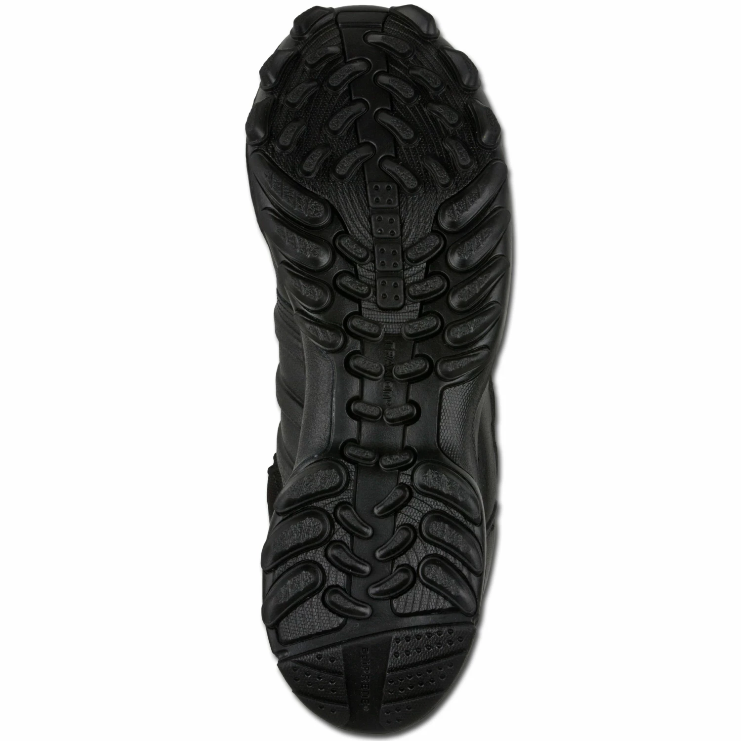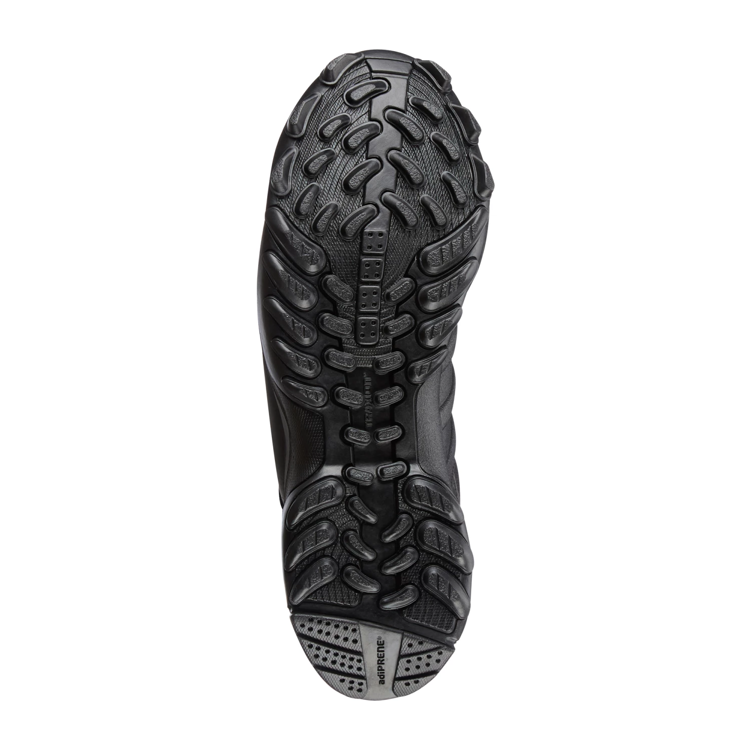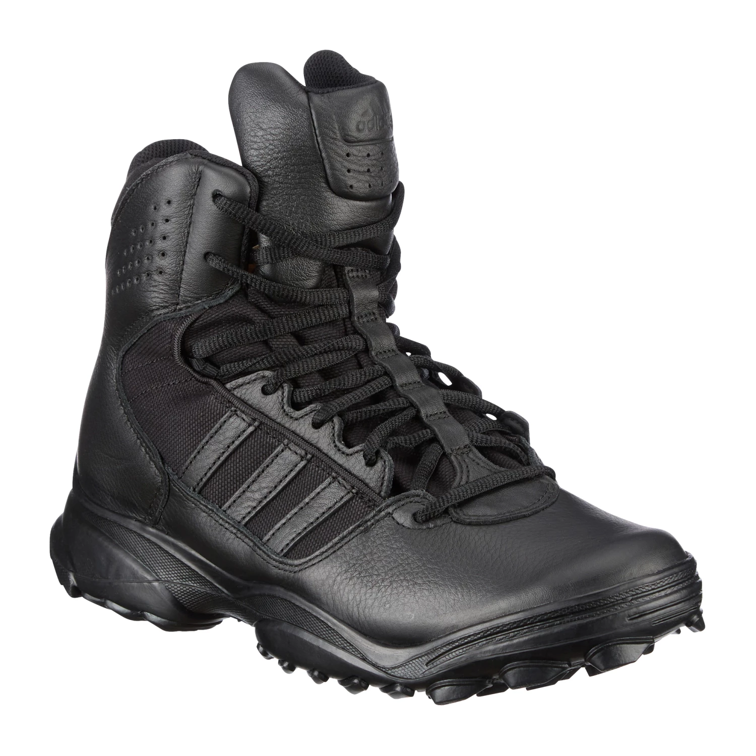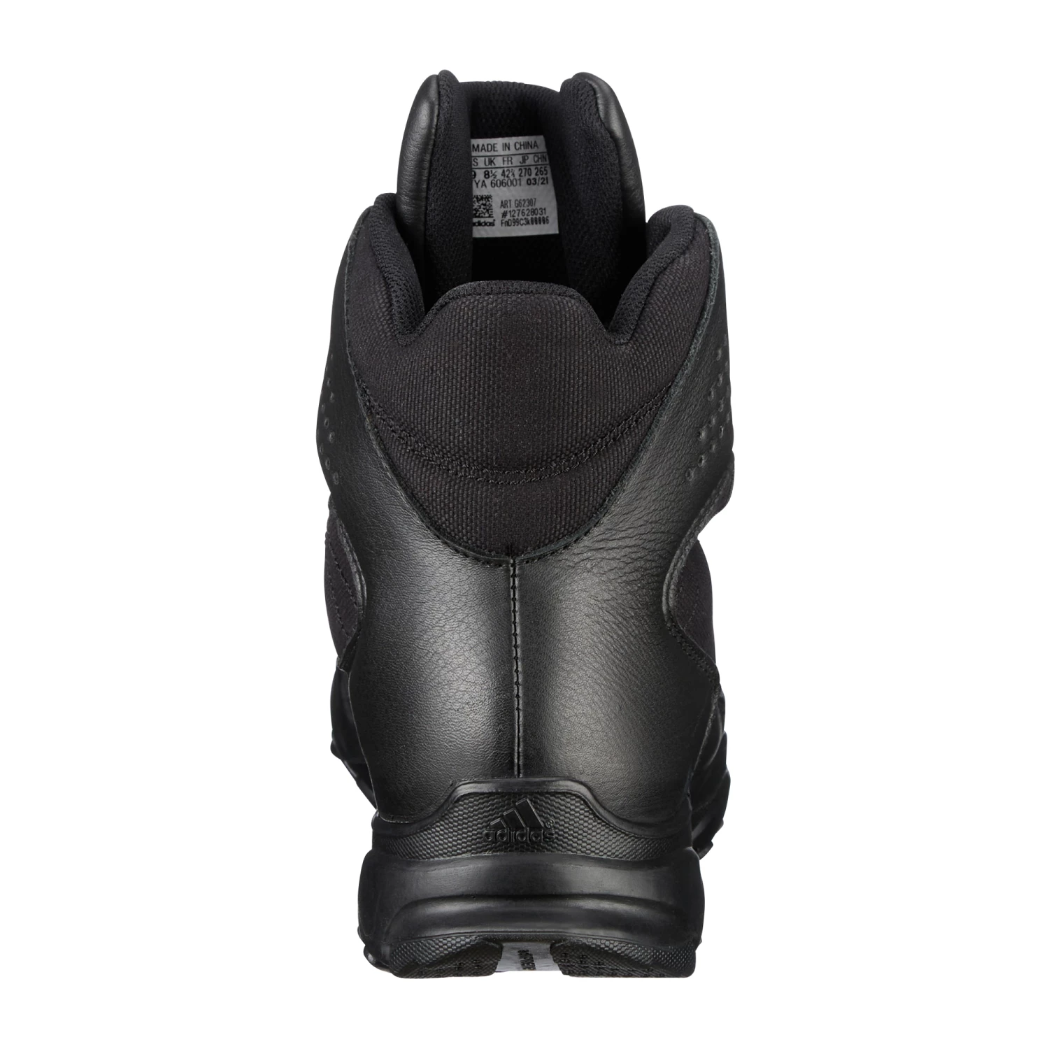 Durch seinen mittelhohen, atmungsaktiven Schaft aus vollnarbigem Glattleder mit Meshmaterial ist der adidas Stiefel GSG 9.7 auch für wärmere Klimazonen geeignet. Der Stiefel verfügt ebenso über abriebfeste Einsätze sowie eine vollgedämpfte, rutschsichere Sohle. Die Sattelkonstruktion unterstützt den Mittelfuß durch hochabriebfestes Leder mit spezieller Beschichtung (adiTUFF), wie auch an der Innenseite der Sohle. Dadurch wird beim „Fast Roping“ der Schaftverschleiß extrem minimiert (Rope Assault Protection, RAP). Die herausnehmbare, anatomisch geformte EVA-Einlegesohle mit offenporiger, geruchsbindender und schweiß-absorbierender Ortholite -Struktur bietet ein optimales Tragegefühl. Die Einlegesohle ist zur verbesserten Stabilität mit Carbonpartikel versetzt und stützt das Fußbett.