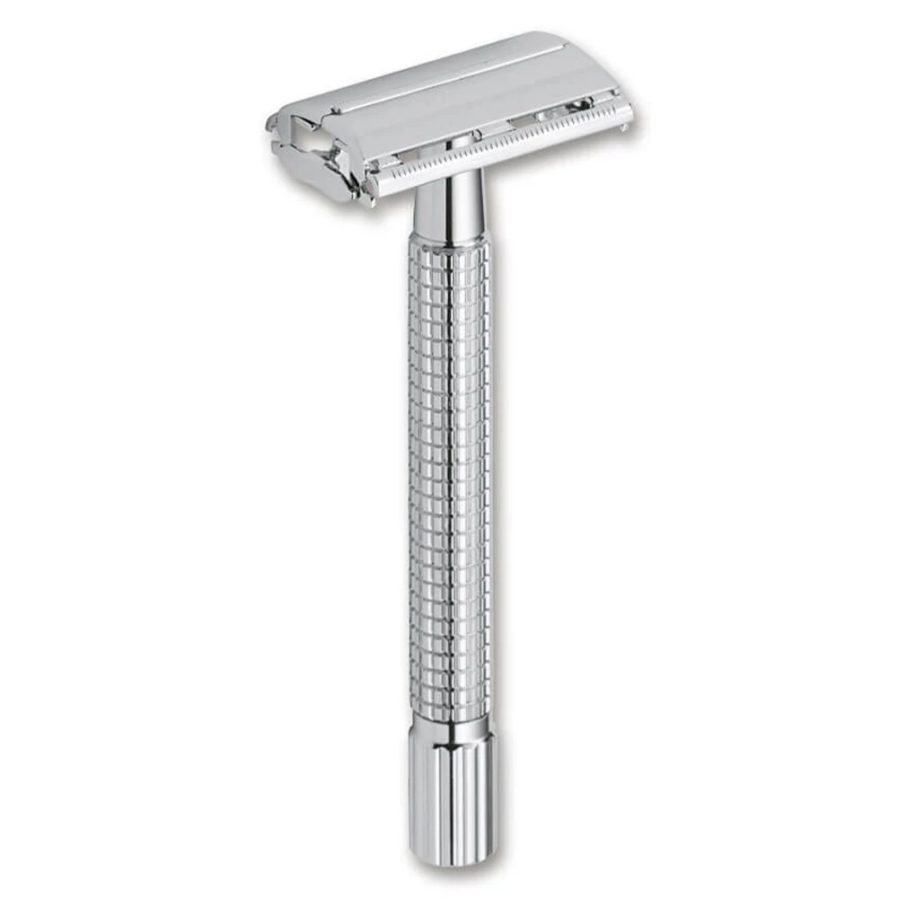 Der Böker Rasierhobel Butterfly L garantiert eine sanfte Rasur. Der Schmetterlingsmechanismus ermöglicht einen einfachen Wechsel der Klingen. Entsprechend öffnet sich durch die Drehung des Endstücks des Griffs der Rasierkopf und Sie erhalten Zugang zur Klinge. Außerdem überzeugt er optisch mit verchromter Ganzmetall-Konstruktion mit dezentem Logo auf der Unterseite.