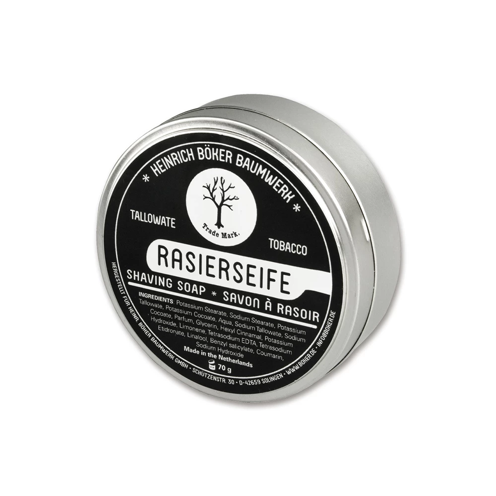 Die Böker Rasierseife Tallowate Tobacco garantiert eine sanfte Rasur. Sie ist auf Rindertalgbasis (Tallowate) hergestellt und hat die Duftrichtung Tobacco.