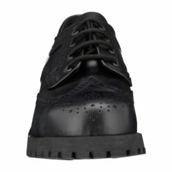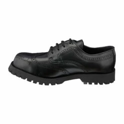 Der Boots & Braces Halbschuh Budapester 4-Loch mit Stahlkappe und Fullbrogue-Lochverzierung überzeugt mit hohem Tragekomfort. Durch die asymmetrischen Leisten sind sie bequemer als gerade geschnittene Modelle. Das Glattleder ist poliert und dementsprechend glänzend. Die Gummisohle ist mit Zierschrauben zum besseren Halt ausgestattet.
