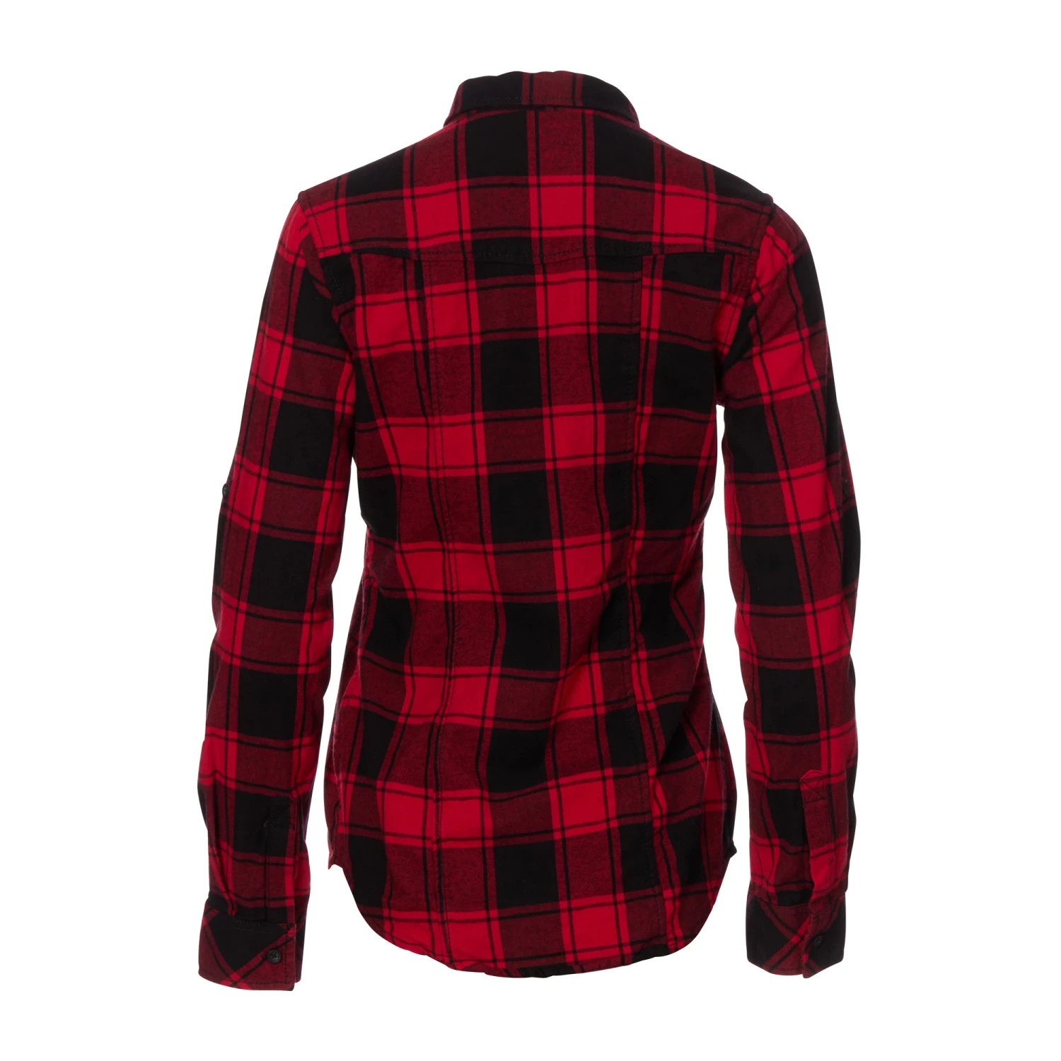 Das Brandit Hemd Amy Flanell Shirt rot schwarz Frauen überzeugt mit hohem Komfort. Der taillierte Schnitt, die aufkrempelbaren Manschettenärmel und die Knopfleiste machen das Oberteil zum wahren Hingucker. In zwei aufgesetzten Brusttaschen kannst Du kleinere Ausrüstung und persönliche Gegenstände verstauen.