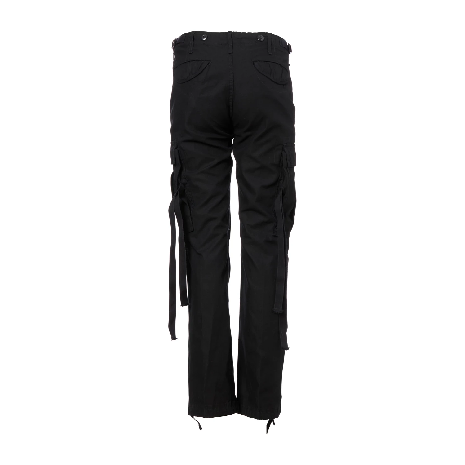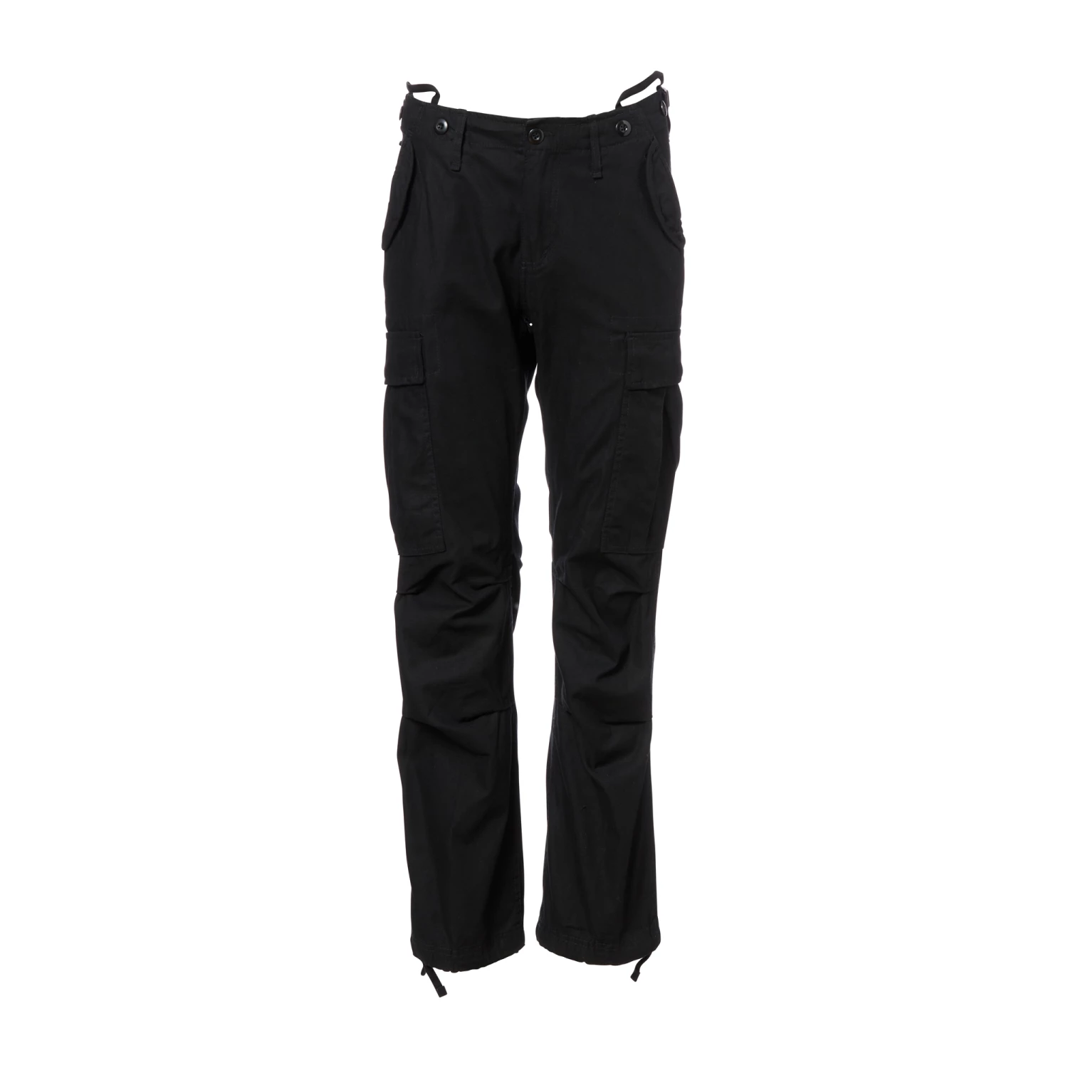 Die Brandit Hose M65 Trouser ist die feminine Version der legendären Armeehose im Vintage Used-Look. Durch eine normale Bundhöhe, einen leicht tiefen Schnitt und ein locker geschnittenes Bein ergibt sich ein Loose Fit-Style und sie überzeugt mit hohem Tragekomfort. Sie besitzt zwei Front-Doppeltaschen, die aus zwei Eingrifftaschen und zwei aufgesetzten Pattentaschen mit Druckknopfverschluss bestehen. Zwei große Bein-Cargotaschen komplettieren die M65. An diesen findest Du lange Bändel, die Du als modisches Statement entweder nach außen tragen oder in den großen Beintaschen verstecken kannst. Taillengurte und Dehnfalten im Kniebereich runden die M65 für Frauen ab.