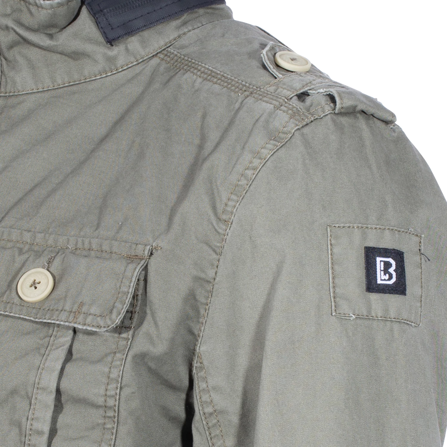 Die Brandit Jacke Britannia oliv zeichnet sich durch hohen Komfort und coolen Look aus. Zu den einprägsamen Stilmerkmalen dieser stylischen Fieldjackets gehören vor allem der Schnitt, die Verarbeitung und die diversen Applikationen, wie die ausgefransten Schnittkanten, Ziernähte, Logo-Badge am Ärmel, Schulterklappen mit Knopf und der legere Stehkragen mit integrierter Kapuze. Der dezente Used-Effekt rundet die modische Sommer- und Übergangsjacke ab und gibt ihr somit das gewisse Etwas.