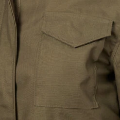Die Brandit Jacke M65 Standard ist eine klassische US-Feldjacke im Damenschnitt. In vier Fronttaschen kannst Du kleine Ausrüstung wie Taschenmesser oder -lampe problemlos und sicher unterbringen. Die Taille kann in der Weite reguliert werden und sichert somit individuellen Tragekomfort. Die Windschutzleiste mit Druckknöpfen und der Armabschluss mit Klett schützen Dich vor Kälte und Wind. Während die Innenjacke vom Äußeren getrennt werden kann, kannst Du die Kapuze bei Nichtgebrauch im Kragen verstauen. Das Mischgewebe macht die Jacke wasserabweisend und robust.