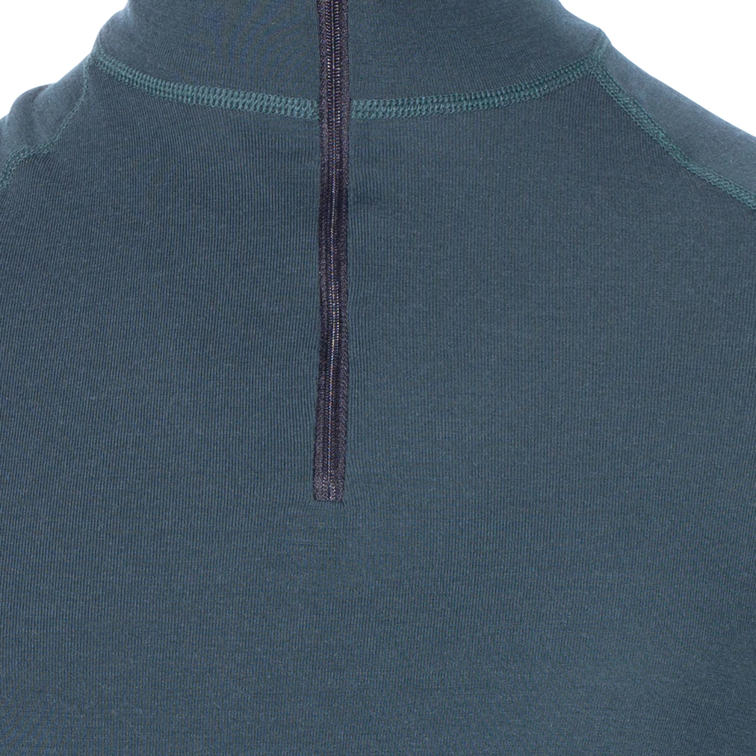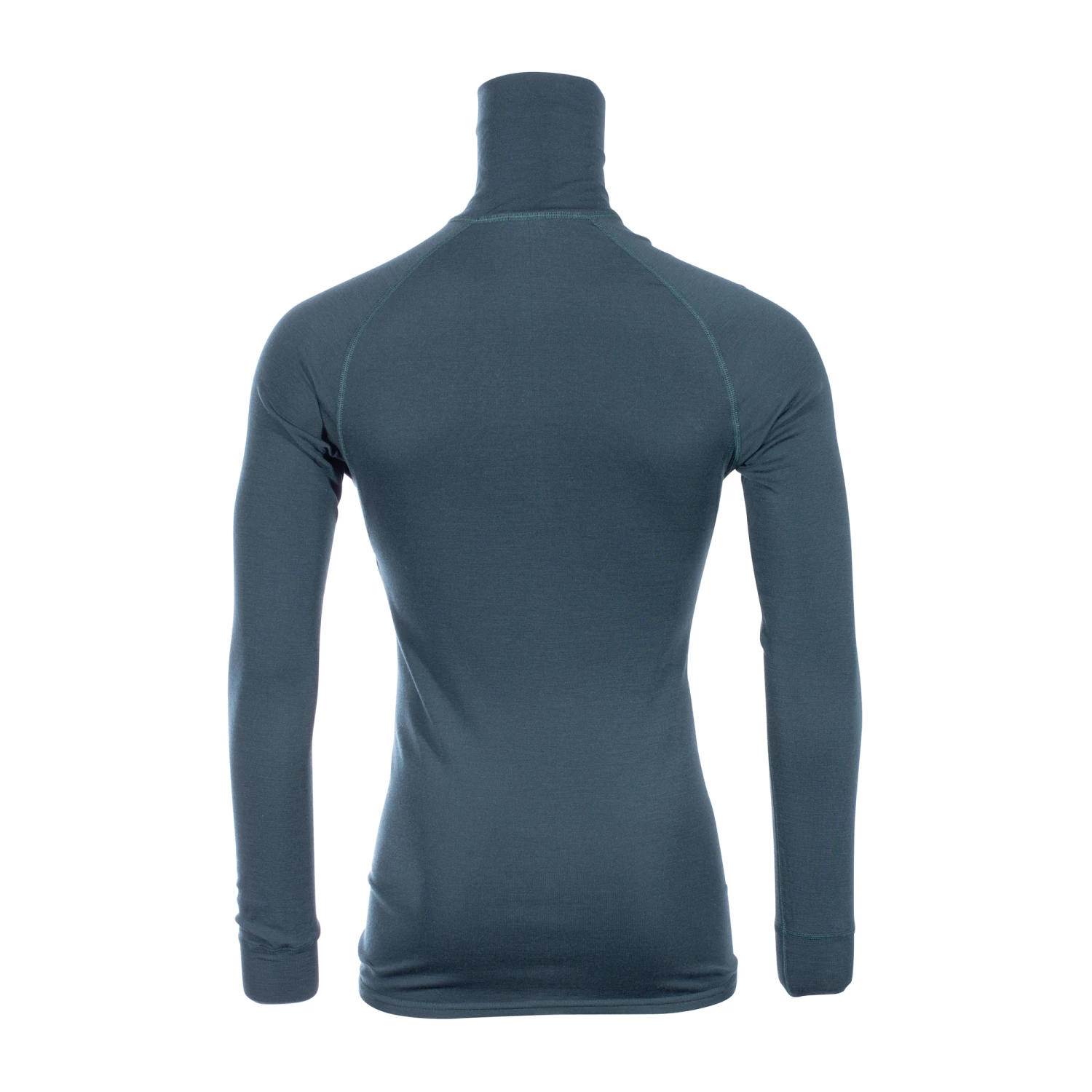 Das Brynje Shirt Classic Wool Zip Polo grün ist ein leichtes Zip-Poloshirt mit umklappbarem Kragen und Schultereinlagen aus einem Wolle/Polyamid-Gemisch. Diese Faser ist für ihre geringe Feuchtigkeitsaufnahme und Leichtigkeit bekannt. Die Netzmaschen liegen nur punktuell auf der Haut auf, so dass sich ein wärmeisolierendes Luftpolster um die Haut legt und somit klimaregulierend wirkt.