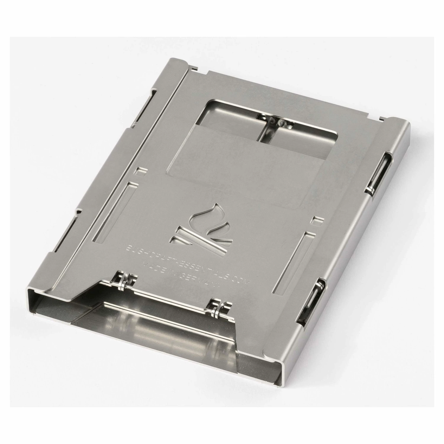 Dieser Bushcraft Essentials Multifunktionseinschub überzeugt mit praktischen Funktionen und erleichtert das Kochen mit der ohnehin funktionalen Bushbox LF zusätzlich. Diese kann beispielsweise sicher und platzsparend in dem kleinen Tool verstaut werden, sodass der Transport im Rucksack problemlos möglich ist. Auch dient der Einschub als robuste Unterlage, die Sie mit nur einem Handgriff in den dafür vorgesehenen Aussparungen einrasten lassen können. Auf diese Weise wird auf unebenem Gelände nicht nur die nötige Stabilität hergestellt, auch schützt der Multifunktionseinschub den Kocher vor Glut und fängt Feuerrückstände auf. Selbst beim Entfachen der Flammen ist dieses Zubehör hilfreich, denn mit ihm können Sie Feathersticks schnitzen oder Rinde schaben.