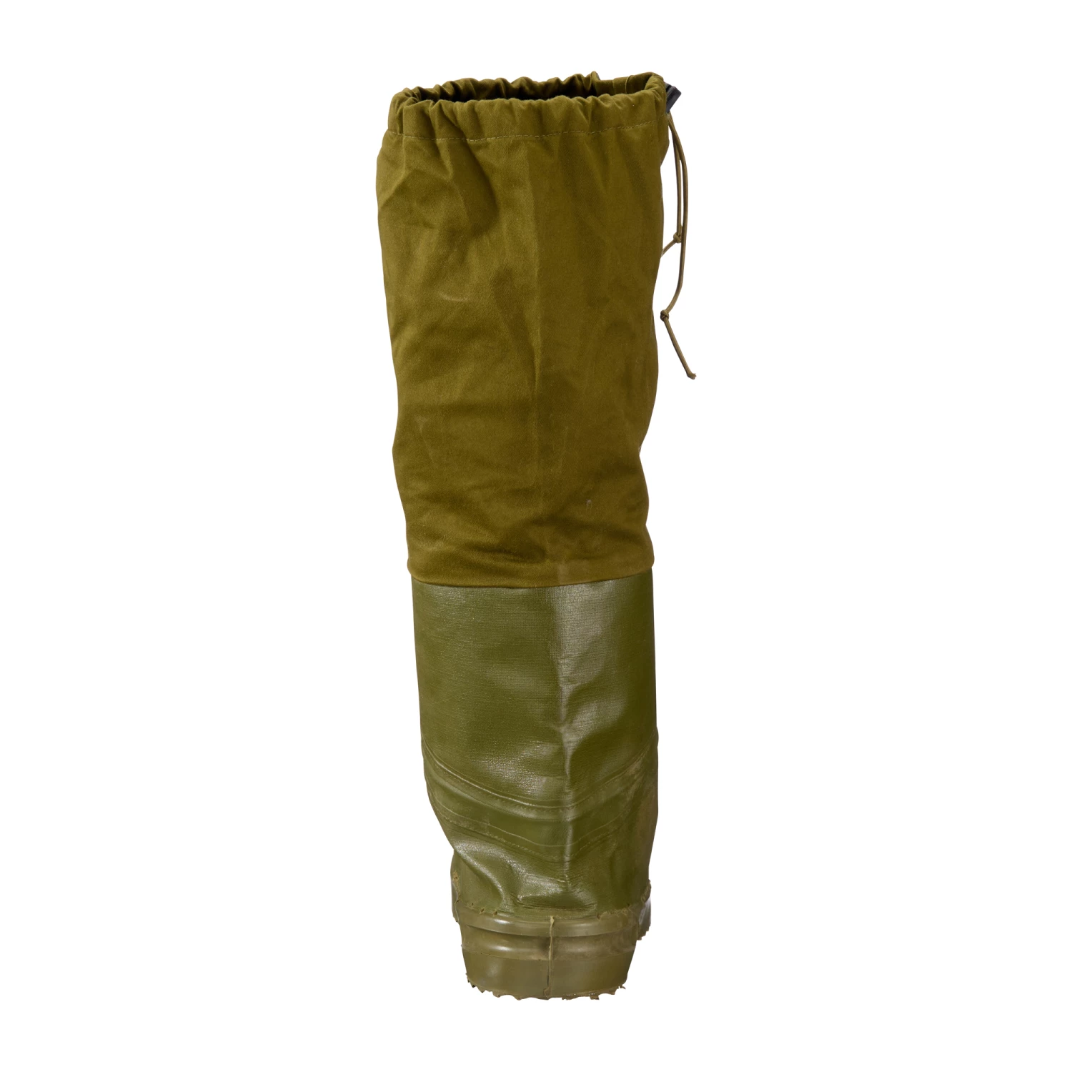 Überschuhe der Bundeswehr KSK in gebrauchtem Zustand. Mit Noppenprofilsohle für besseren Halt. Die Schuhe werden über das normale Schuhwerk gezogen, um die Schuhe vor Nässe und Kälte zu schützen. Mit Schnürung auf dem Schuh und Tunnelzug an der angebrachten Gamasche.