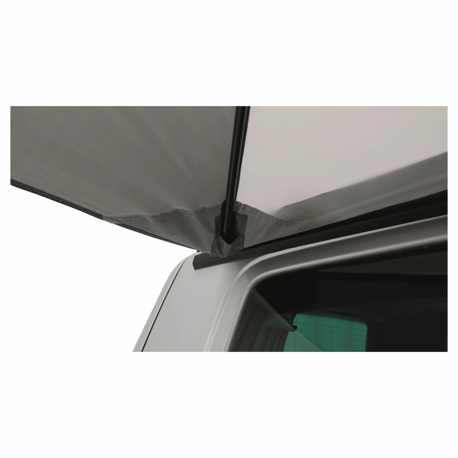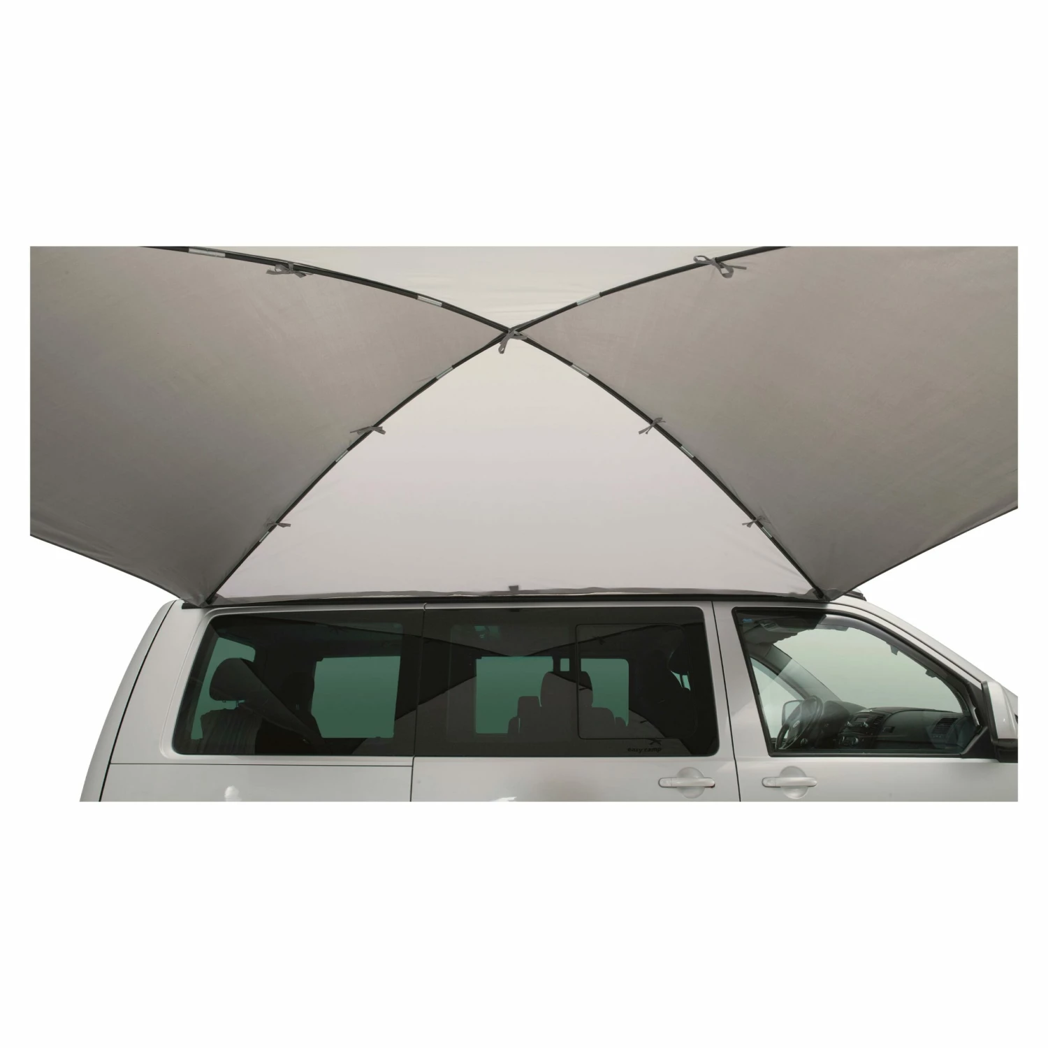 Das Easy Camp Vordach Flex Canopy granite grey lässt sich schnell und einfach an Wohnmobil, Wohnwagen oder Kleinbus befestigen. Es bietet sofortigen Schatten und Regenschutz und erweitert Deinen Lebensraum auf Campingplätzen, beim Wildcampen oder an Strandtagen. Die beiden zusammensetzbaren Stahlstangen und die kreuzverstrebten Glasfaserstangen, die die Mittelhöhe unter Spannung anheben, sorgen für reichlich Stehhöhe und verhindern ein Flattern des Stoffes.