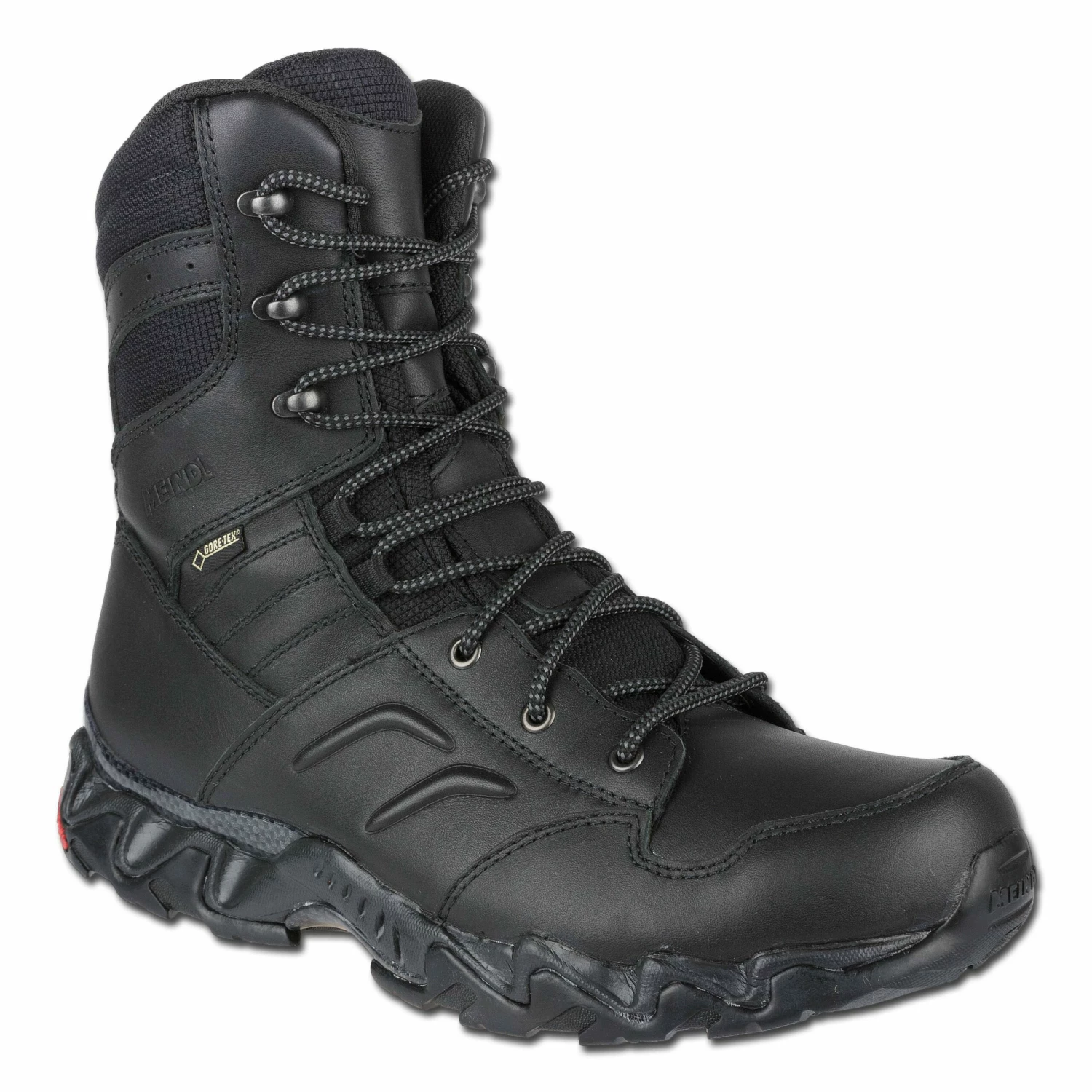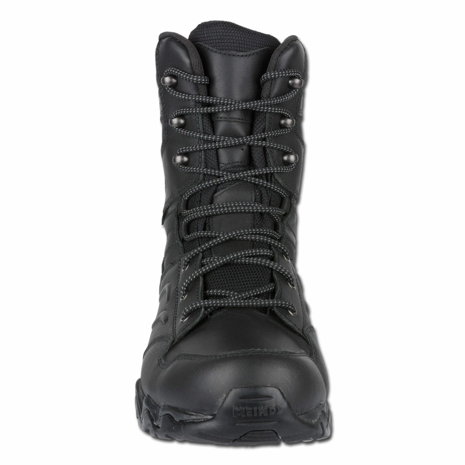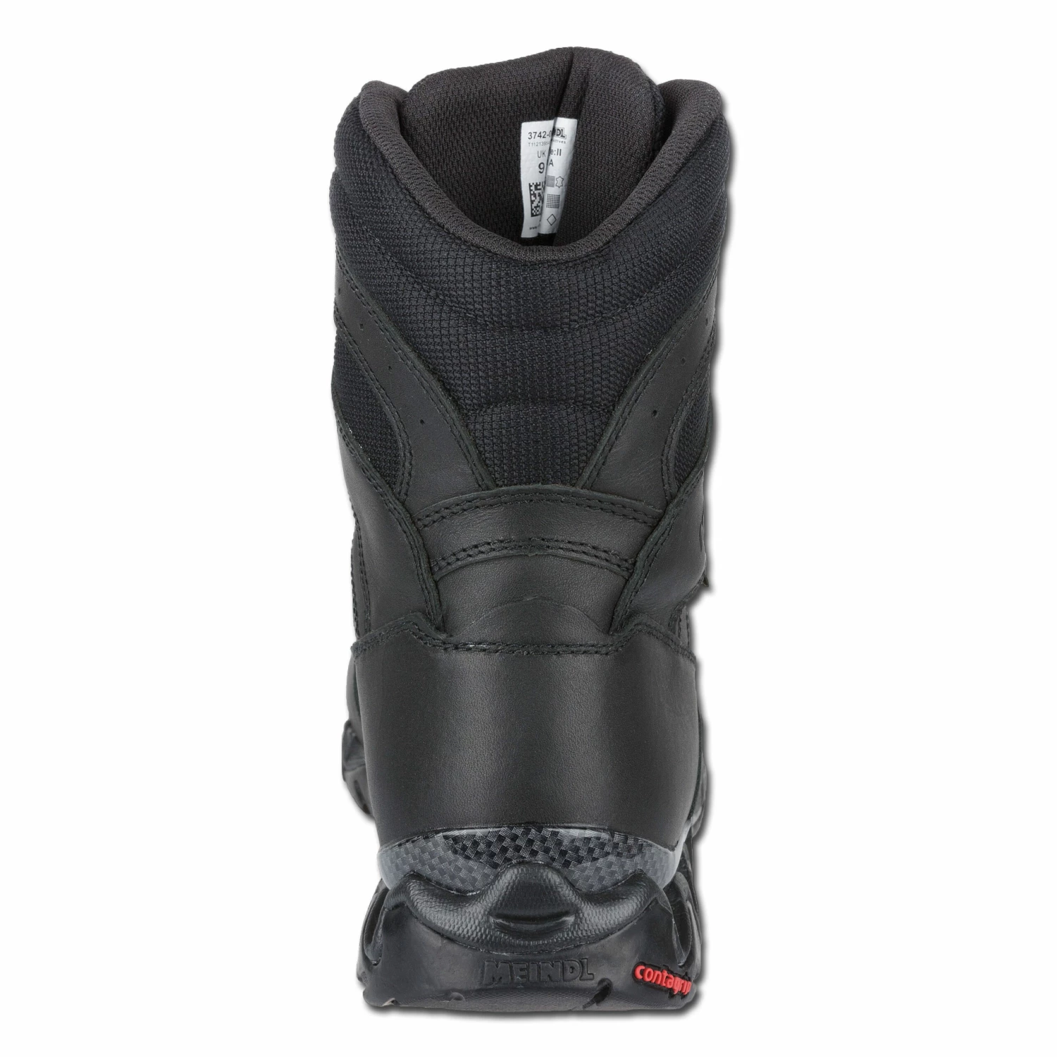 Der Meindl Black Cobra ist neu entwickelter Einsatzstiefel mit sportlicher Optik, der für nahezu jedes Gelände geeignet ist. Das flexible Obermaterial sowie eine Beugezone über der Ferse erhalten die natürliche Beweglichkeit, ohne die Stabilität des Fußes zu vernachlässigen. Eine Gore Membran sorgt für maximale Atmungsaktivität und macht den Schuh dauerhaft wasserdicht. Durch 2 Textilschlaufen im Knöchelbereich kann der richtige Fersensitz kontrolliert werden. Seitliche Polster und Lederverstärkungen erhöhen den Tragekomfort und die Stabilität. Die öl- und benzinbeständige Contagrip* Sohle bietet aufgrund ihrer Profilgestaltung hervorragende Trittsicherheit auch in extremem Gelände. Stone Shield Technologie in der Zwischensohle schützt den Fuß von unten.
