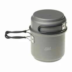 Das Esbit Spiritus-Trockenbrennstoff-Kochset Aluminium hartadonisiert lässt sich sowohl mit den bewährten Esbit-Brennstofftabletten als auch mit Spiritus betreiben. Die beiden Töpfe aus hartanodisiertem Aluminium haben Edelstahl-Klappgriffe und eine Volumenanzeige. Der kleine Topf dient auch als Deckel/Pfanne/Teller. Der Stand und Brenner lassen sich platzsparend im Topf verstauen.