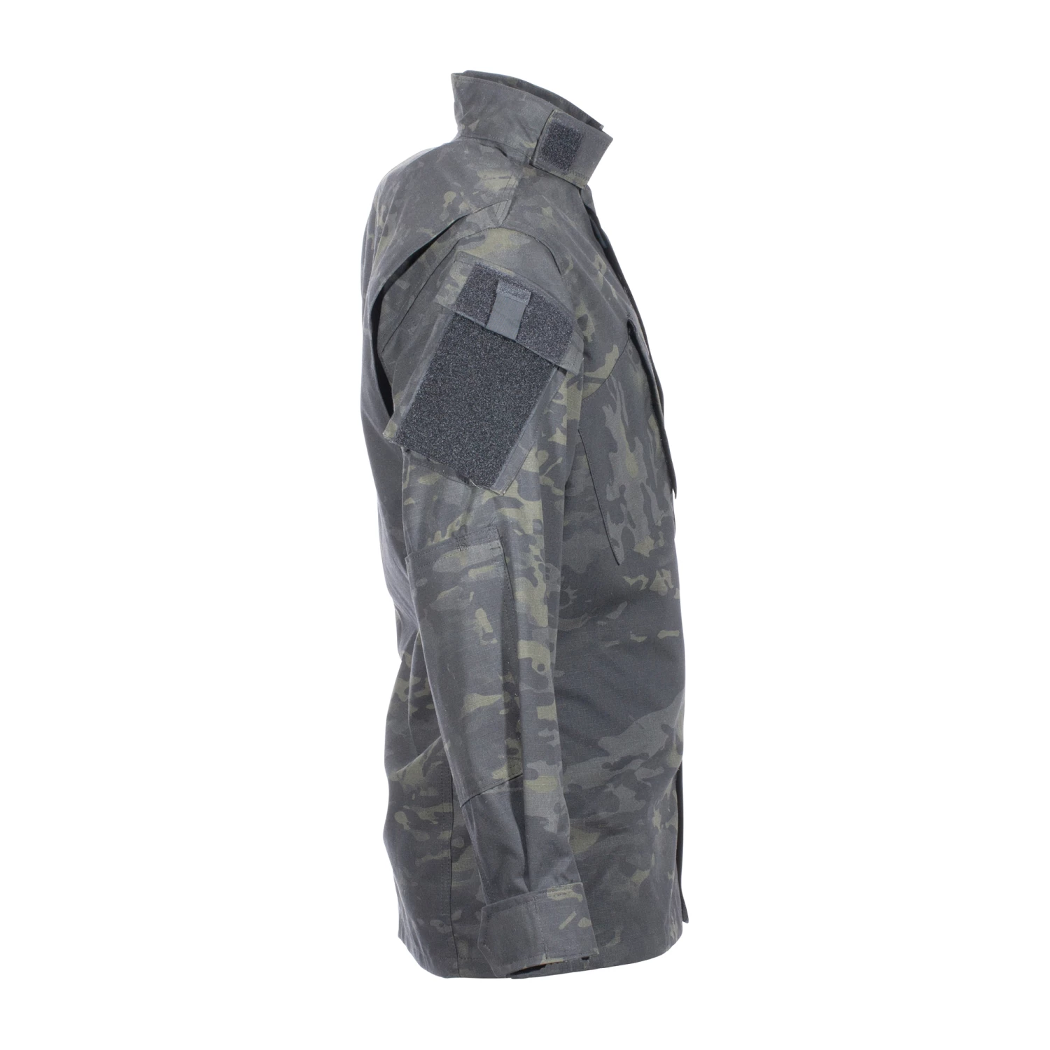 Die Feldjacke im neuen Tarnmuster MultiCam black. MultiCam black ist eine Erfindung der amerikanischen Firma Crye Precision und als Basistarnung für fast alle urbanen Einsatzgebiete, auch im Infrarot oder Nachtsichtbereich geeignet. Das Design täuscht die Wahrnehmung des menschlichen Auges und macht den Träger durch Verschmelzen der Ränder und Verblassen von Farben und Formen fast unsichtbar. Für den Beobachter wird das Tarnmuster nur noch als Teil des Hintergrundes erkannt.