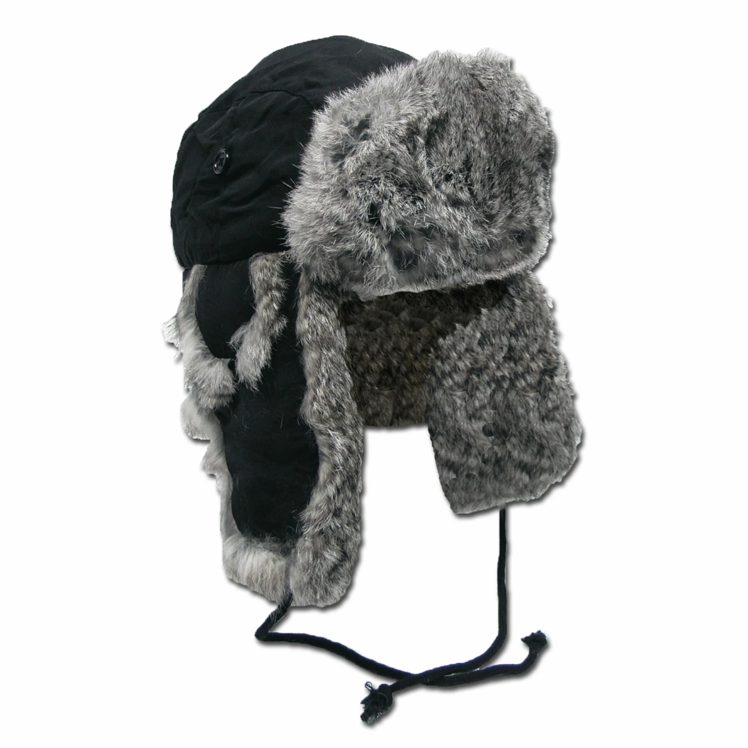 Die Fellmütze mit grauem Kaninchenfell besitzt hochklappbare Ohrschützer mit Gehörabdeckungen und ist mit einer Steppfütterung ausgestattet. Ideal für die kalten Wintertage.
