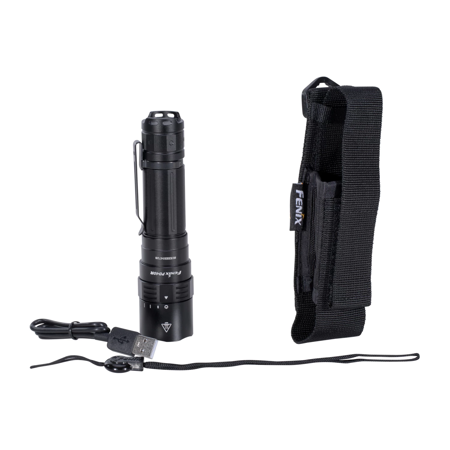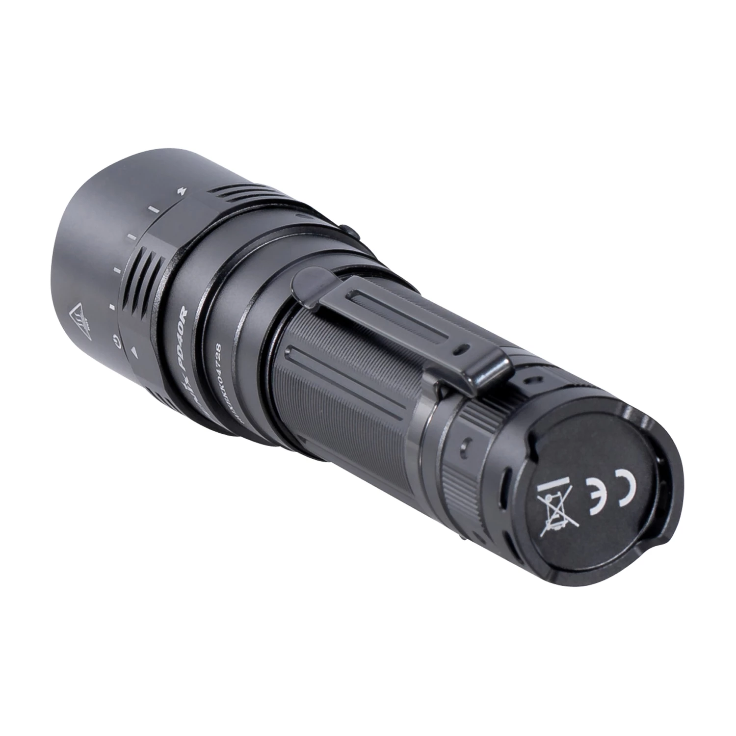 Die leistungsstarke Fenix Taschenlampe PD40R V2.0 LED garantiert mit einer Leuchtkraft von 3000 Lumen und einer Reichweite von bis zu 405 Meter maximale Ausleuchtung. Alle Helligkeitsstufen lassen sich einfach und schnell über den patentierten Drehring-Mechanismus auswählen. Dies sorgt auf nächtlichen Touren oder auf der Suche nach Ausrüstung für konstante Beleuchtung. Während eine Anzeige auf einen niedrigen Akkustand hinweist, gewährleistet das ergonomische, rutschfeste Design, dass Sie die Taschenlampe auch längere Zeit bequem halten können. Ein Verpolungsschutz verhindert, dass der Akku falsch herum eingelegt wird.