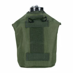 Eine französische Aluminium-Feldflasche mit Schraubverschluss. Lieferung inklusive Feldflaschenhülle aus Baumwolle und einem praktischen Aluminiumbecher.
