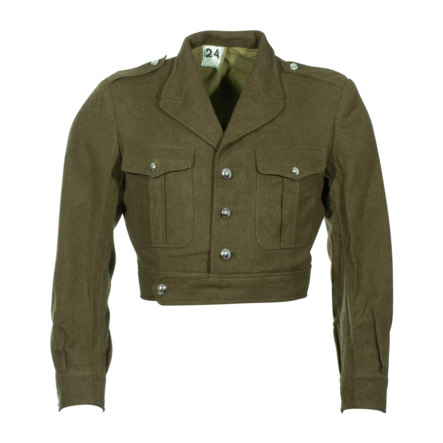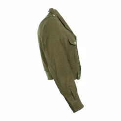 Gebrauchte Jacke aus Französischem Bestand. Das Wollmaterial hält angenehm warm. Die Jacke lässt sich mit einer Knopfleiste schließen und kann am Bund ebenfalls durch einen Knopf gesichert werden.