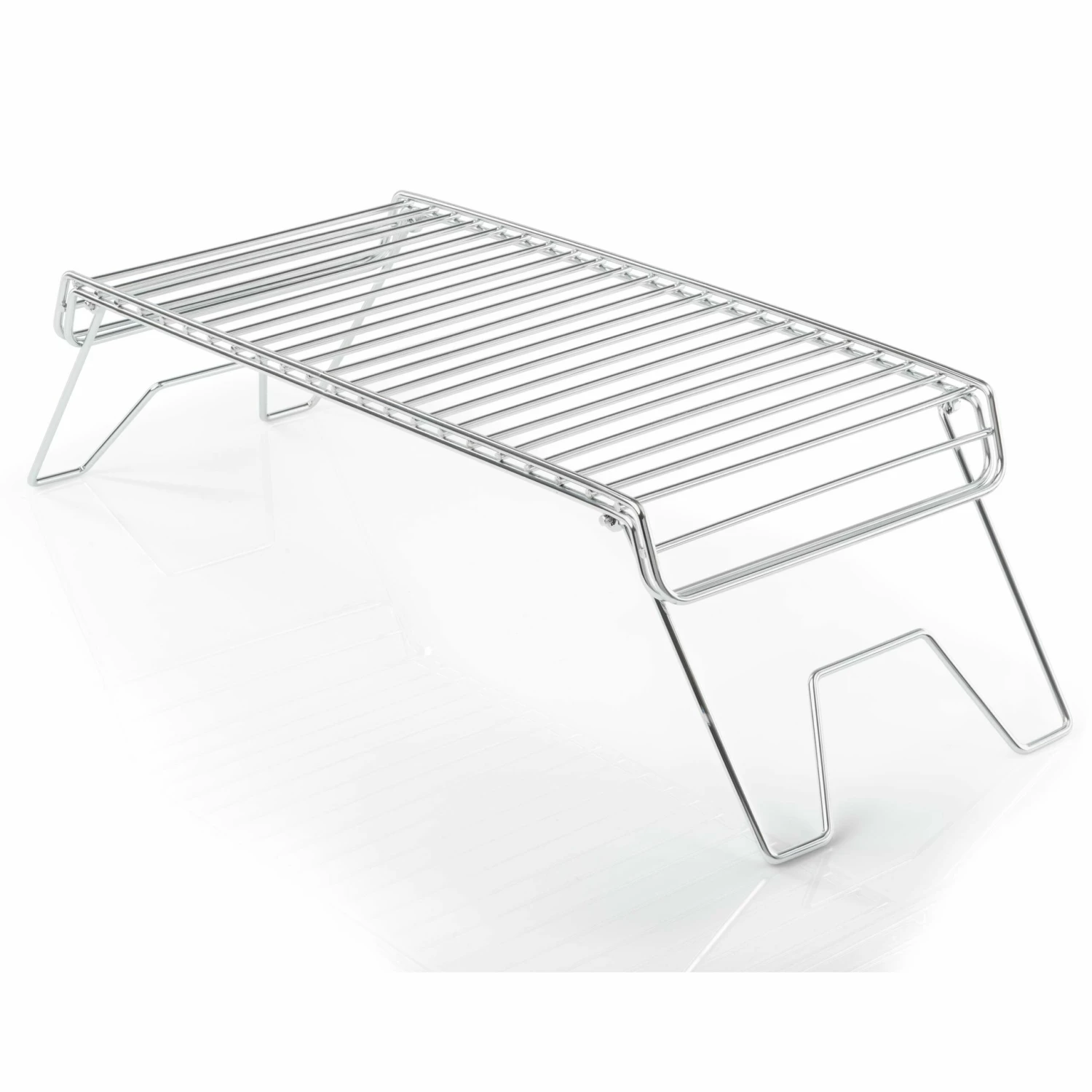 Der Folding Campfire Grill eignet sich durch seine robuste Edelstahlkonstruktion hervorragend zur Nutzung in der freien Natur. Erhöhte Grillkanten mit Streben in unterschiedlichen Abständen garantieren, dass Lebensmittel ebenso wie Töpfe einen stabilen Halt haben und während des Kochens nicht verrutschen. Durch einklappbare Beine lässt sich der Grill platzsparend verstauen.