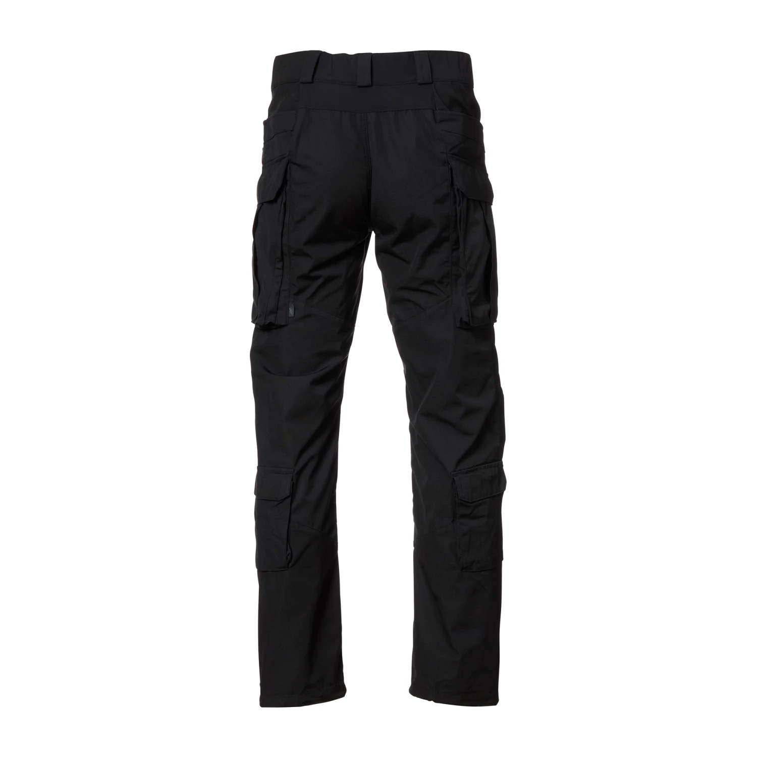 Die Helikon-Tex Feldhose MBDU Trousers schwarz ist Teil der Modern Battle Dress Uniform von Helikon-Tex. In Form einer klassischen Cargo-Hose bietet diese Hose die neusten und praktischsten Features, die Ihnen Flexibilität und größtmögliche Bewegungsfreiheit gewährleisten. Dazu verfügt die Hose über einen lockeren, profilierten Schnitt und im Rückenbereich sowie Schritt über elastische VersaStretch Einsätze. Der Bund wird mithilfe eines Klettbandes verschlossen und bietet dank der breiten Gürtelschlaufen einem Gürtel von bis zu 45mm Breite Platz. Die klassischen Gesäßtaschen wurden an ihren Kanten gegen Schutz vor Abnutzung verstärkt und eignen sich zum Transport von Magazinen, größeren Messern oder Taschenlampen. Seitlich wurden neben den großen Cargotaschen auch zwei kleinere Kletttaschen im Bereich des Unterschenkels angebracht, die zusätzlichen Stauraum bieten.
