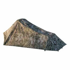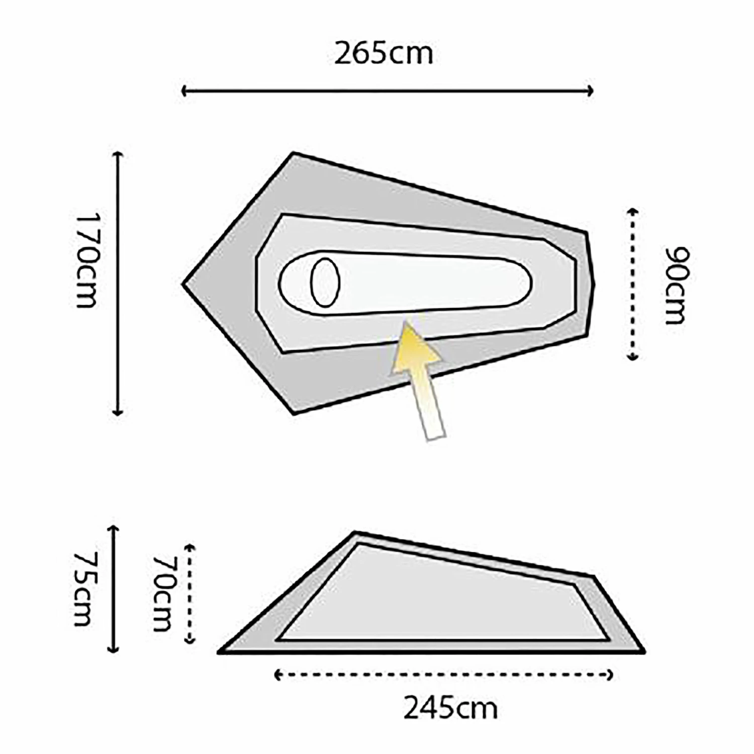 Dieses flache und platzsparende 1-Personen-Zelt ist optimal für Radfahrer und Abenteuer-Trekker geeignet. Die Nähte wurden zur Verstärkung der Wasserdichtigkeit einmal komplett versiegelt, die Grundplane aus langlebigem Polyethylen ist komplett mit Außenhaut vernäht und schützt vor jeder Witterung. Das Zelt wird nach dem „inner pitch first“-Verfahren aufgebaut, also zuerst die Innenhaut und dann die Außenhaut übergestreift. Der Schlafraum ist besonders flach und somit nicht so anfällig für Wind. Im Außenzelt lassen sich die Ausrüstung und Schuhe unterbringen, sodass auch diese nicht dem Wetter ausgesetzt sind. Die stabile Fiberglaskonstruktion (6,9 mm) hält das Zelt zusammen mit den gut sichtbaren und sicher befestigten Zeltleinen am Platz.