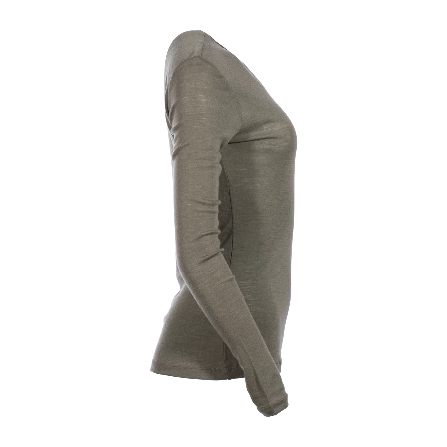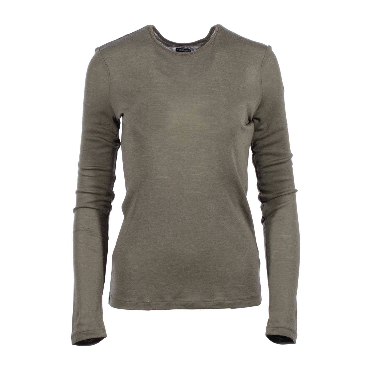 Das Icebreaker Langarmshirt Everyday Merino 175 oliv Frauen bietet Tragekomfort bei jedem Wetter und eignet sich zum Sport genauso wie für den Alltag. Dieses eng anliegende Oberteil mit bequem sitzendem Rundhalsausschnitt besteht aus Merinowolle-Rippstrick, welches bei warmem Wetter kühlend und bei kaltem Wetter isolierend wirkt. Du kannst es sowohl solo als auch unter einem Midlayer oder einer Jacke tragen. Durch die eingesetzten Ärmel trägt es sich auch angenehm unter einem Rucksack. Das verlängerte Rückenteil wärmt die empfindliche Nierengegend, während der verwendete Rippenstrick Bewegungsfreiheit bietet. Das Logo rundet das Oberteil ab.