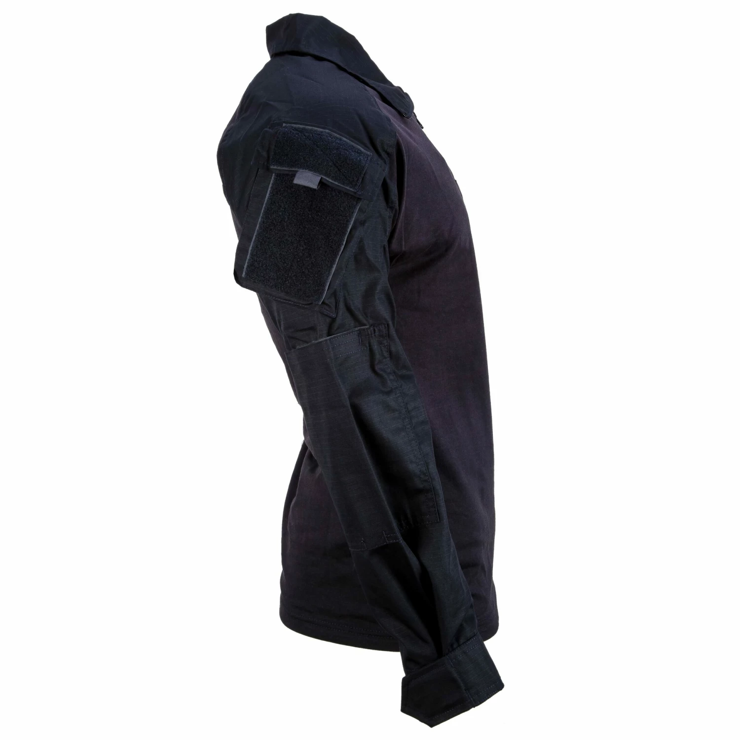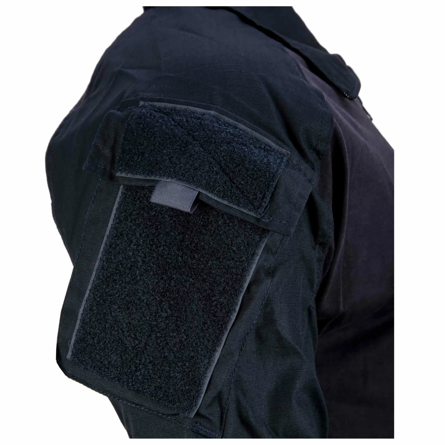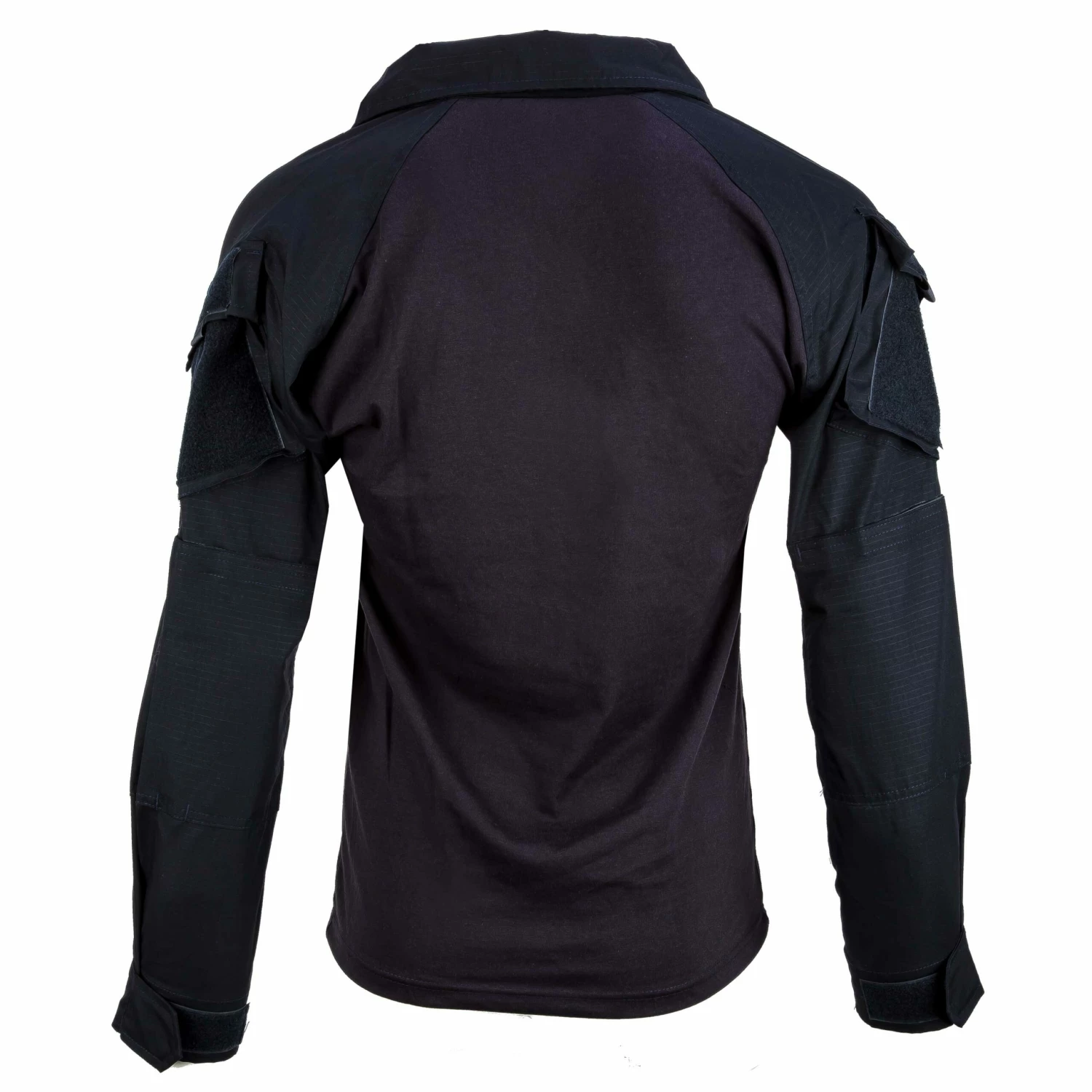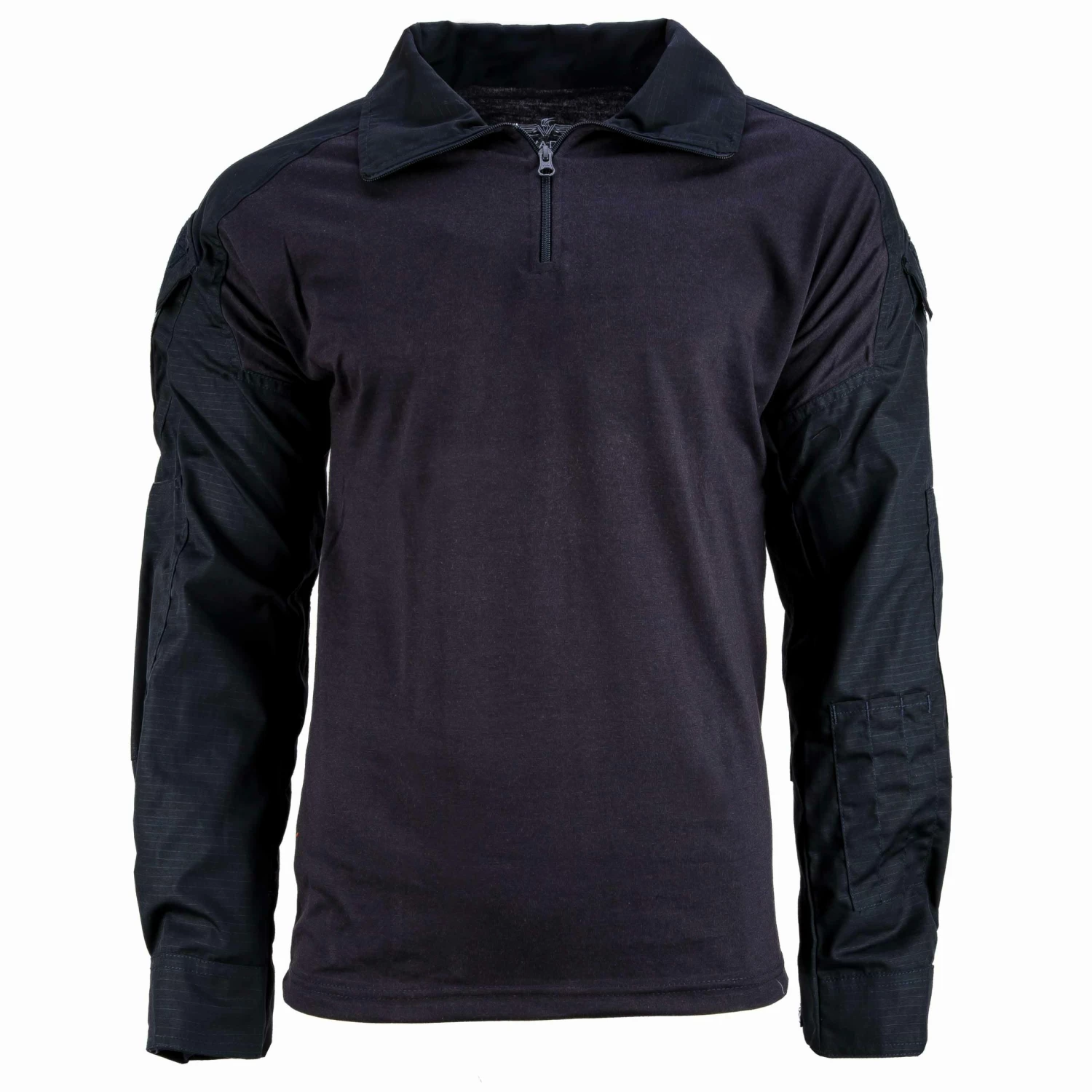 Das Invader Gear Combat Shirt navy ist speziell für den Gebrauch unter Plattenträgern konzipiert und bietet einen hohen Qualitätsstandard zu einem sehr attraktiven Preis-Leistungsverhältnis. Im modernen Schnitt gehalten, sorgt dieses Shirt für eine sehr gute Bewegungsfreiheit und Atmungsaktivität, die durch den im Kragen verbauten YKK-Reißverschluss zusätzlich unterstützt wird. Beide Ärmel verfügen über schräg aufgenähte Oberarmtaschen, die mit Klettflächen zur Anbringung von Patches ausgestattet sind. Die Ellbogen des Shirts sind für einen verstärkten Schutz mit einer zweiten Stoffschicht versehen, die zeitgleich auch als Einschubfach für passende Ellbogenschützer verwendet werden kann. Den Abschluss macht ein praktisches Ärmeleinschubfach, das zur Unterbringung von Stiften genutzt werden kann. Der Ärmelabschluss kann mittels Klettverschluss individuell eingestellt werden.
