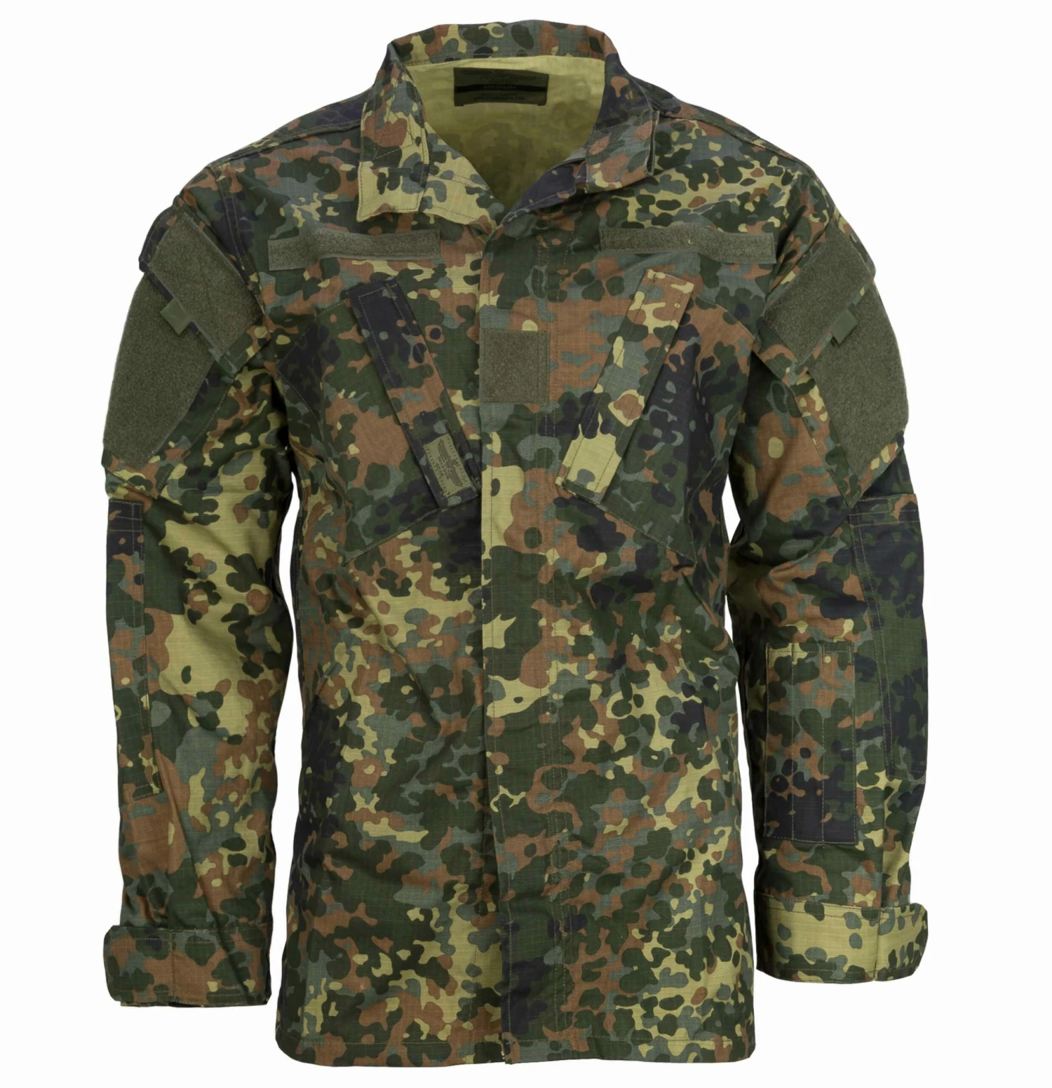 Diese moderne Invader Gear Feldbluse Revenger TDU Shirt flecktarn ist ein aktuell designtes Einsatzhemd, welches durch seinen atmungsaktiven Stoff, den hohen Qualitätsstandard und das gute Preis-Leistungsverhältnis überzeugt. Ausgestattet mit zahlreichen Klettflächen auf der Front, am Kragen und an den Ärmeln, ist die Anbringung von Rangabzeichen oder Patches sehr variabel gehalten. Die schräg aufgenähten Brust- und Ärmeltaschen sind leicht zugänglich und bieten ausreichend Stauraum für zahlreiche persönliche Accessoires. Die Ärmelbündchen sind dank der Klettstreifen individuell einstellbar und erhöhen den allgemeinen Tragekomfort der Feldbluse. Ein durchgehender YKK-Reißverschluss und der komplett verschließbare Stehkragen erlauben die geschlossene Nutzung des Einsatzhemds, z.B. bei kälteren Temperaturen.