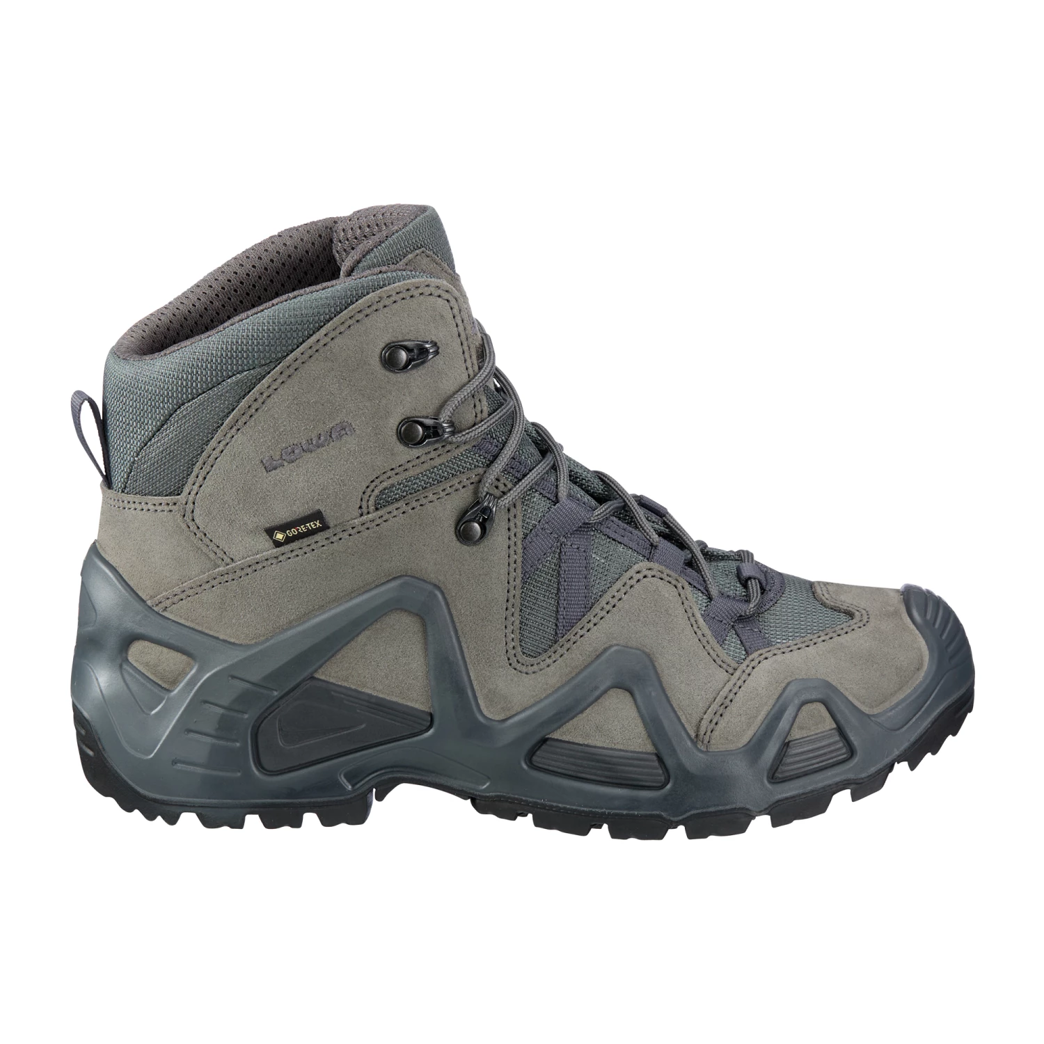Der LOWA Stiefel Zephyr GTX Mid TF aus der Task Force Serie ist ein leichter und komfortabler Multifunktionsschuh mit hervorragender Passform. Er ist voll geländetauglich und somit auch ideal für Trekking, Wanderungen und Mountainbiken usw. Das Futter aus Gore-Tex Vision 3LY macht dieses Modell absolut wasserdicht und atmungsaktiv. Der stabile Textilschaft aus Veloursleder und die Monowrap-Sohlenkonstruktion bieten sicheren Halt und bewahren sich bei Einsätzen bei feuchtem und rutschigem Untergrund. Außerdem gewährleistet die LOWA Cross-Sohle mit ihrem hiking-orientierten Profil sehr gute Haftung und Traktion.