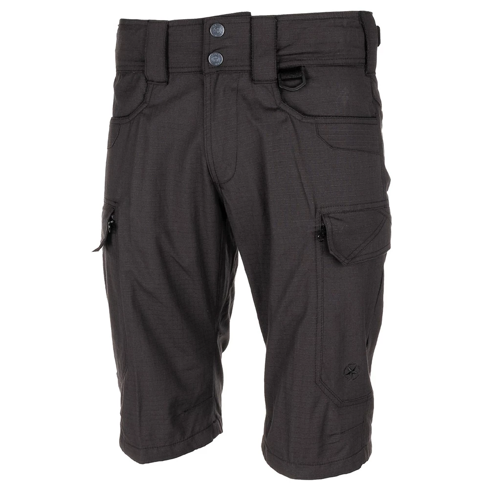 Bequeme Bermuda Shorts aus robustem RipStop-Material. Der elastische Bund mit 2 Druckknöpfen kann über ein Klettband in optimale Passform gebracht werden. Mit insgesamt 7 Taschen haben Sie reichlich Platz für persönliche Gegenstände.