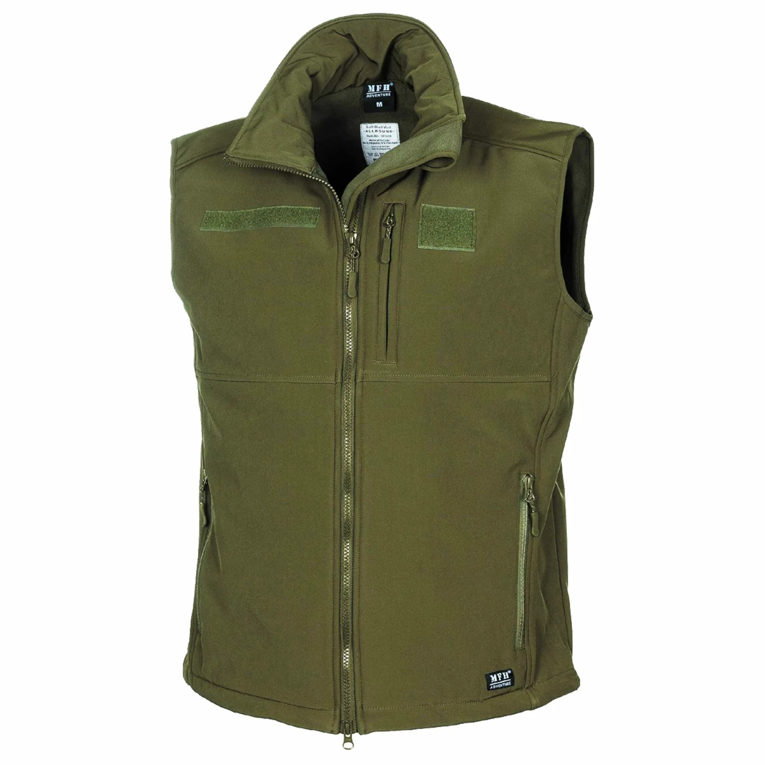 Die wind- und wasserdichte MFH Weste Softshell Allround oliv überzeugt mit hohem Tragekomfort. Der 2-Wege-Frontreißverschluss mit Kinnschutz ermöglicht verschiedene Trageweisen. Auf Brusthöhe befinden sich zwei Klettflächen für beispielsweise Namensbänder oder Einheitsabzeichen. Ein Tunnelzug mit Kordelstopper in der Taille und der verlängerte Rücken sorgen für einen perfekten Sitz. In einer Brusttasche mit Reißverschluss links, zwei Hüfttaschen mit Reißverschluss und einer Innentasche mit Reißverschluss rechts kannst Du problemlos Tools verstauen.