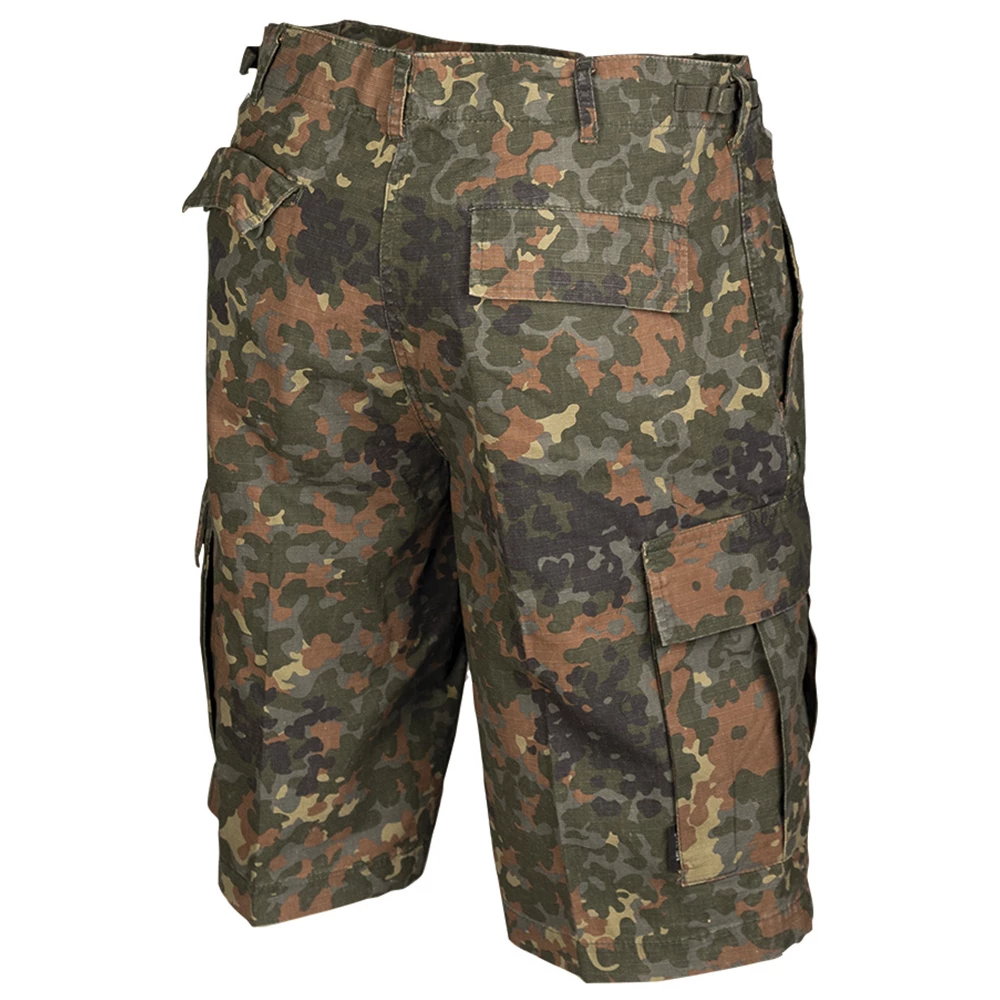 Die beliebte Bermuda Shorts ist nun auch in flecktarn erhältlich. Sie basiert dabei auf ihrem originalen Vorbild und besteht aus einem sehr strapazierfähigen Ripstop-Gewebe. Versehen mit Bein-, Schub- und Gesäßtaschen ist sie eine leichte Alternative zur langen Hose.