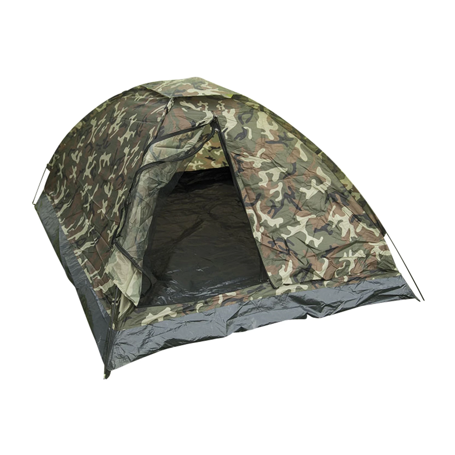 Das Zelt verfügt über eine große Eingangstür, die mit einem Moskitonetz ausgestattet ist, um ungewünschte Gäste fernzuhalten. Im Inneren des Zeltes gibt es ausreichend Platz für drei Personen und ihr Gepäck. Die Zeltstangen bestehen aus robustem Fiberglas und sind leicht und einfach zu handhaben.