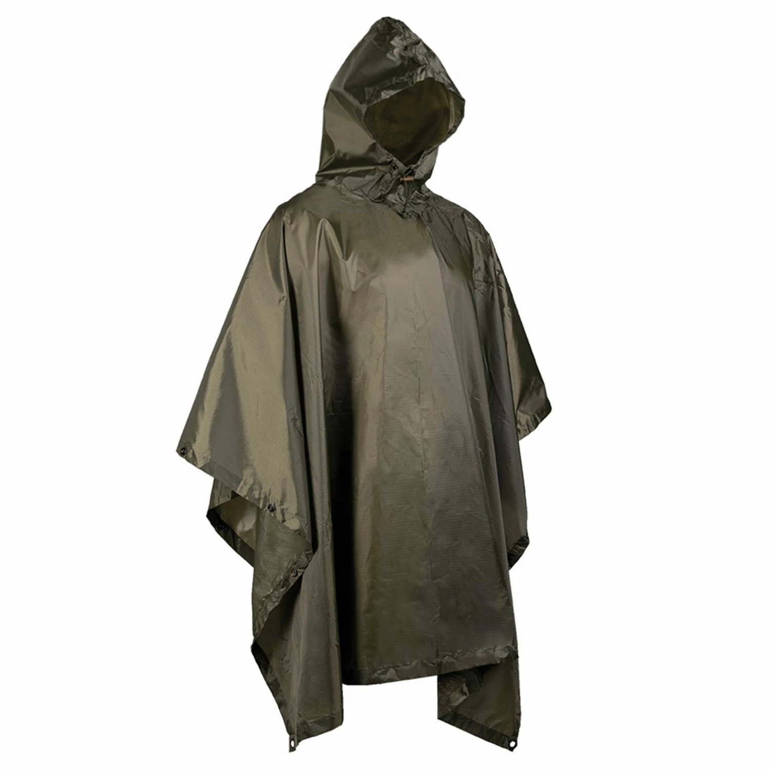 Der Poncho aus widerstandsfähigem Ripstop-Gewebe ist ein vielseitiges Ausrüstungsstück, was sich nicht nur als Überwurf bei Regen verwenden lässt, sondern auch als Tarp, Schutz- oder Abdeckplane, Biwaksack oder mit einem weiteren Poncho auch als Notzelt. Zur leichten Verwendung befinden sich große Ösen an alle vier Ecken sowie Druckknöpfe an einer Längsseite. Der Poncho lässt sich platzsparend in der mitgelieferten Tasche unterbringen und erweitert jedes Gepäck sinnvoll.