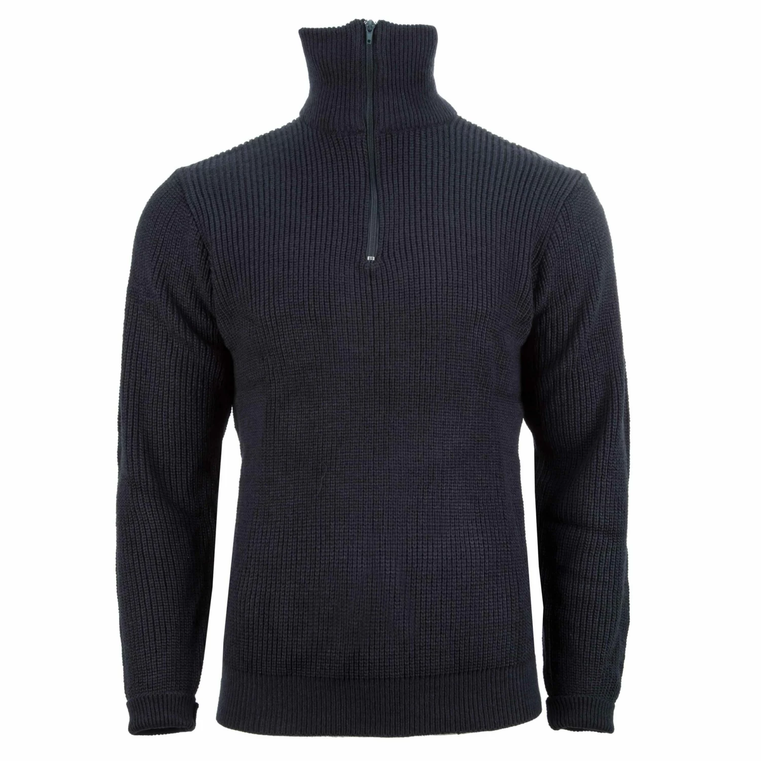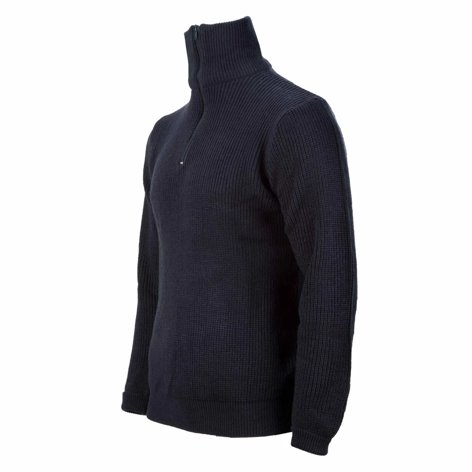 Bequemer Pullover mit zeitlosem Design. Hochschliessender Stehkragen mit Reißverschluss und Strickbund an Ärmeln und Saum.