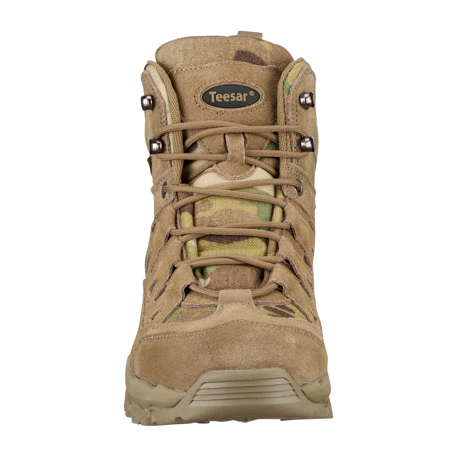 Robuster Outdoorstiefel im originalen Multicam® Tarnmuster. Für hohen Tragekomfort und gute Passform sorgt das verwendete Wildleder in Kombination mit der Laufsohle aus Gummi/EVA. Der EVA-Schaumstoff besitzt eine gute Isolationswirkung und hält den Fuß trocken und warm. Die Innensohle aus Polyester kann bei Bedarf entnommen werden. Mit Zehenkappe für mehr Trittstabiltät und Schutz.