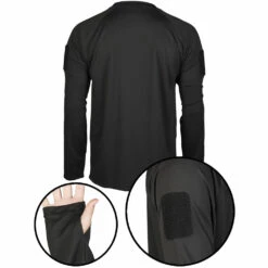 Sportlich geschnittenes Rundhals-Langarmshirt aus schnelltrockendem und atmungsaktivem Polyester-Material. Dank Daumenschlaufen liegt das Shirt auch unter Jacken gut an und verrutscht nicht, zusätzlich wärmt es. Die Klettflächen an den Oberarmen ermöglichen das Anbringen von Patches und Abzeichen.