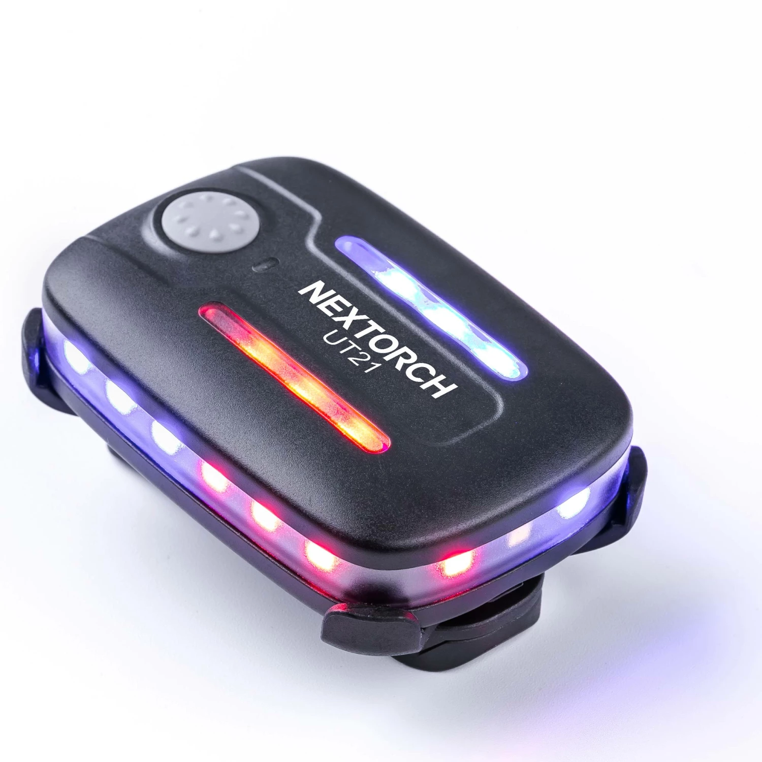 Das Nextorch Notlicht UT21 schwarz verfügt über ein Double-Mode-Design mit rot-blauem Blitz und weißem Licht. Es kann sowohl als Schulterleuchte als auch als Notlicht verwendet werden. Die gleichmäßige Verteilung von 22 Hochleistungs-LEDs sorgt für eine 360°-Ausleuchtung und erlaubt ein Sichtfeld von bis zu ca. 1000 Meter bei klarem Himmel. Da die Leuchtmodi und -richtungen ganz einfach per Druckknopfschalter gewechselt werden können, ist es einfach zu bedienen. Dies ist auch beim Tragen von Handschuhen möglich. Die UT21 kann auch auf Metalloberflächen befestigt werden, wofür zwei starke Magnete auf der Unterseite eingelassen sind.