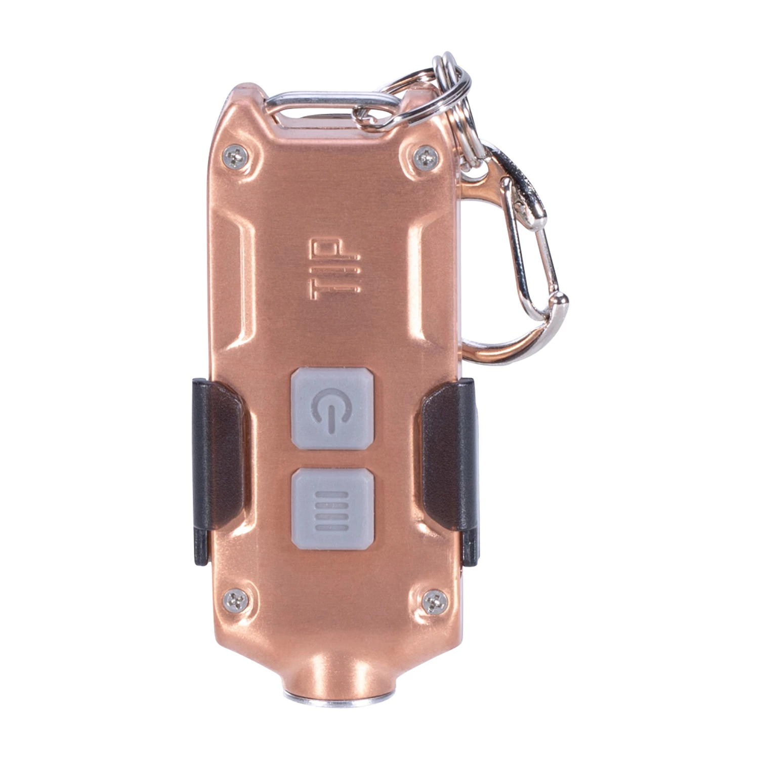 Die Nitecore Schlüsselanhängerlampe TIP überzeugt sowohl mit kleinem Maß wie auch mit großer Strahlkraft. Sie verfügt über zwei Modi. Während der Daily-Mode sich nach 30 Sekunden automatisch abschaltet, leuchtet die Lampe im Constant-Mode durchgehend. Das robuste Kupfer-Material sorgt für Stabilität.