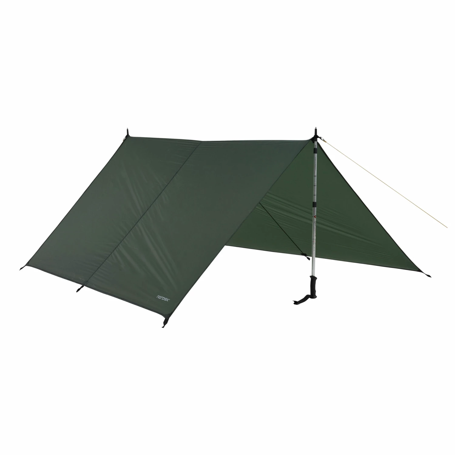 Das Voss 5 ULW ist ein Ultraleichtgewicht unter den Tarps und gehört mit 240 g zu den leichtesten der Welt. Dieses Gesamtgewicht beinhaltet alles, was für den Aufbau benötigt wird, kann aber sogar noch verringert werden, indem die mitgelieferten Abspannleinen und Haken ausgepackt werden. So sind 170 g das absolute Minimum an Gewicht bei absolutem Minimalpackmaß. Das Tarp bietet dennoch die volle Schutzfunktion und kann mittels 9 Befestigungspunkten und 6 mitgelieferten Abspannleinen in nahezu jeder Umgebung errichtet werden.