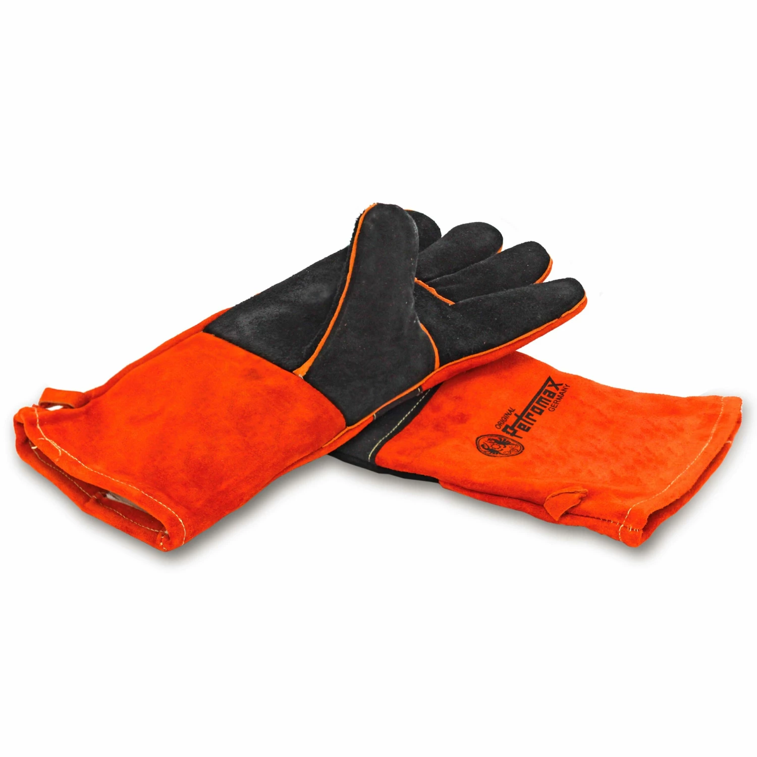 Robuste und feuerhemmende Handschuhe mit Aramidfasern. Das feuerfeste Material bietet Schutz bis zu einer Temperatur von 300°C. Durch die langen Stulpen schützen sie auch die Unternahme vor Funkenflug und Flammen. Sie eignen sich zum Schüren von Feuer, zum Wenden von Grillgut oder zum Umschichten von Holz. Mit dem klassischen Petromax-Design mit dem Drachenlogo passen sie auch thematisch zu ihrem Einsatzzweck.