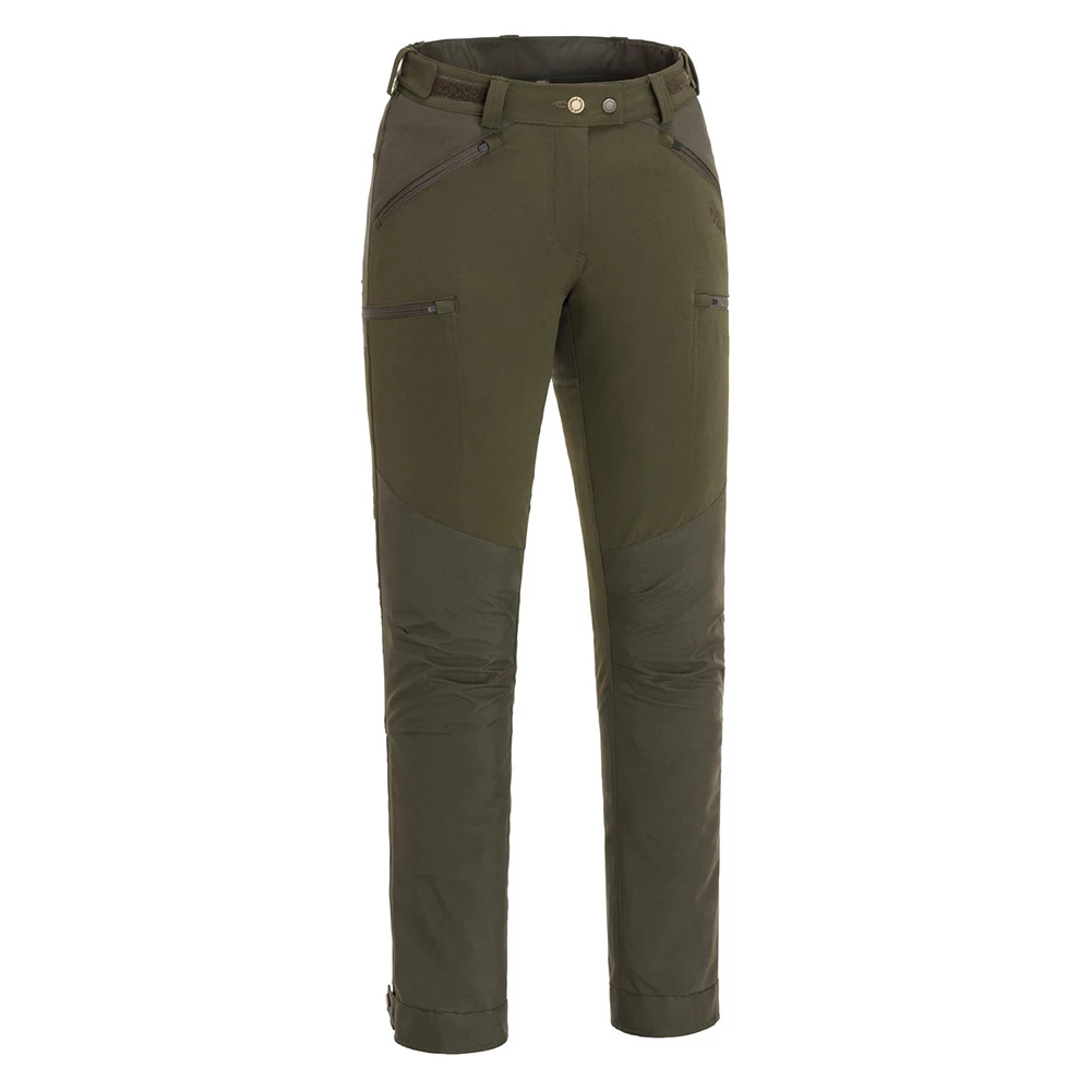 Die Pinewood Hose Abisko Brenton oliv suede brown Frauen überzeugt mit hohem Tragekomfort und mit geringem Gewicht. Das dreilagige Gewebe mit hochatmungsaktiver Membran wird kombiniert mit der wasserabweisenden Bionic Finish Eco-Behandlung. Die verstellbare Taille und das dehnbare 4-Wege-Stretch sorgen für individuellen Tragekomfort. Durch die Belüftungsreißverschlüsse an den Seiten und den unteren Beinreißverschluss entsteht eine angenehme Luftzirkulation. In Beintaschen mit Reißverschlüssen kannst Du kleine Ausrüstung wie ein Taschenmesser verstauen.
