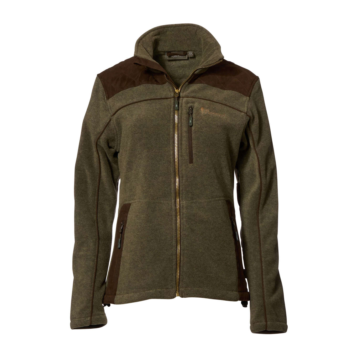 Die Pinewood Jacke Diana olive melange suede brown Frauen ist perfekt für den Alltag. Einsätze in Wildlederoptik runden das Oberteil optisch ab. Der leicht taillierte Schnitt und der verstellbare Saum garantieren Komfort. In zwei Seitentaschen und einer Brusttasche kannst Du kleine Ausrüstung verstauen.