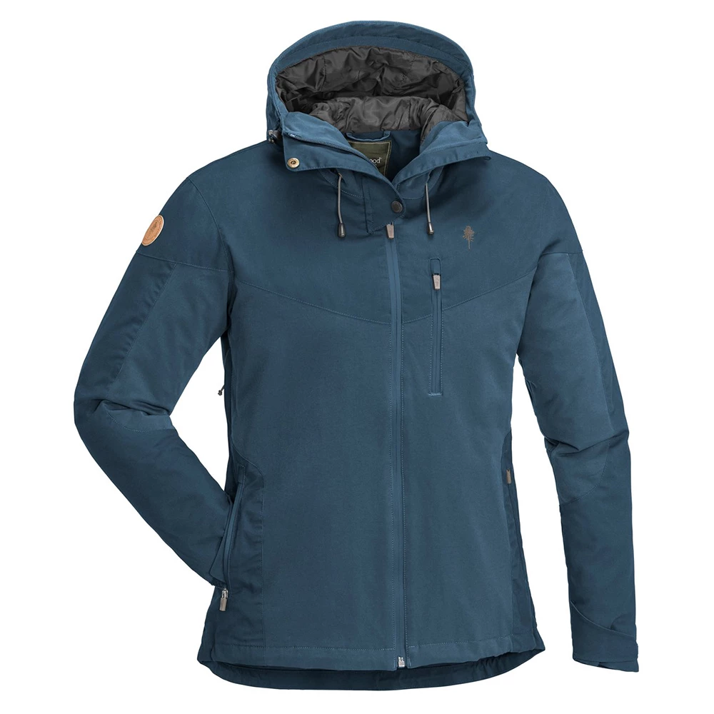 Die Pinewood Jacke Finnveden Hybrid Extrem dark dive Frauen ist eine perfekte Übergangsjacke. Aufgrund der verschweißten Nähte ist sie winddicht. Die organische, umweltfreundliche und fluorcarbonfreie (PFC) Imprägnierung Bionic Finish-Eco sorgt für wasser- und schmutzabweisende Eigenschaften. Während die 4-Wege-Stretchkomponenten für zusätzliche Flexibilität sorgen, garantiert das Futter mit High-Ventilation-Mesh und mit Belüftungsöffnungen an den Seiten hervorragende Atmungsaktivität. Die feste Kapuze ist mit Krempe und Volumenregulierung vorne und hinten ausgestattet. In einer wasserabweisenden Brusttasche mit Reißverschluss kannst Du beispielsweise Dein Handy verstauen. Der verstellbare Saum und die verstellbaren Ärmelbündchen mittels Klett runden das Oberteil ab.