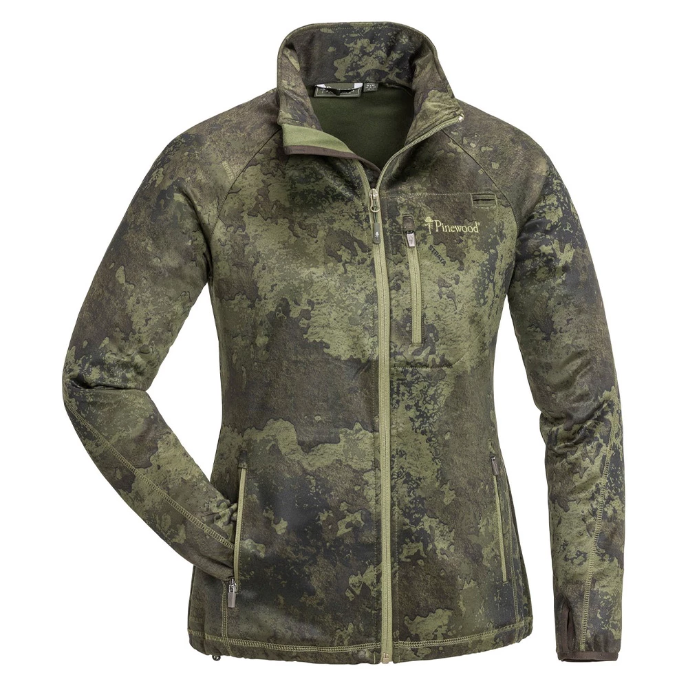 Die Pinewood Jacke Frazer Camou camouflage Frauen überzeugt mit einem Höchstmaß an Bewegungsfreiheit. Sie kann entweder als Jacke oder als wärmende zweite Lage getragen werden. Auf der Innenseite befindet sich weiches Fleece. Außerdem sind die Ärmel mit Daumenlöchern ausgestattet. In zwei großen Fronttaschen mit Reißverschluss und einer Brusttasche mit Öffnung für Antenne oder Kabel kannst Du kleine Ausrüstung verstauen.